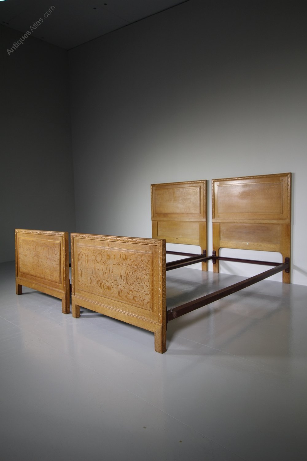 Pair of Antique Oak Single Beds by Heals of London