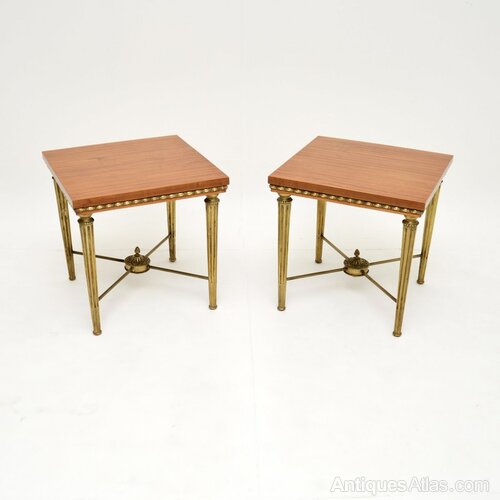 They are of outstanding quality, with gorgeous satin woods tops that compliment the brass bases beautifully. There are fine details to the brass, including fluted legs, stretcher bases with acorn finials and beading around the top edges.