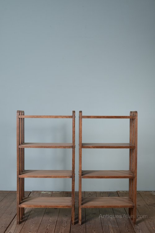 A lovely, simple design, these antique oak bookcases/tables are in very good, strong condition.