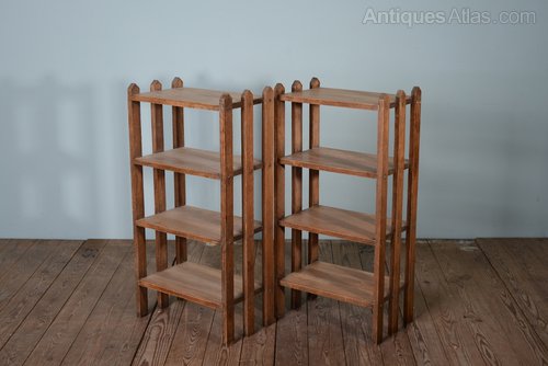 Each antique table/bookcase has four shelves, providing plenty of storage.