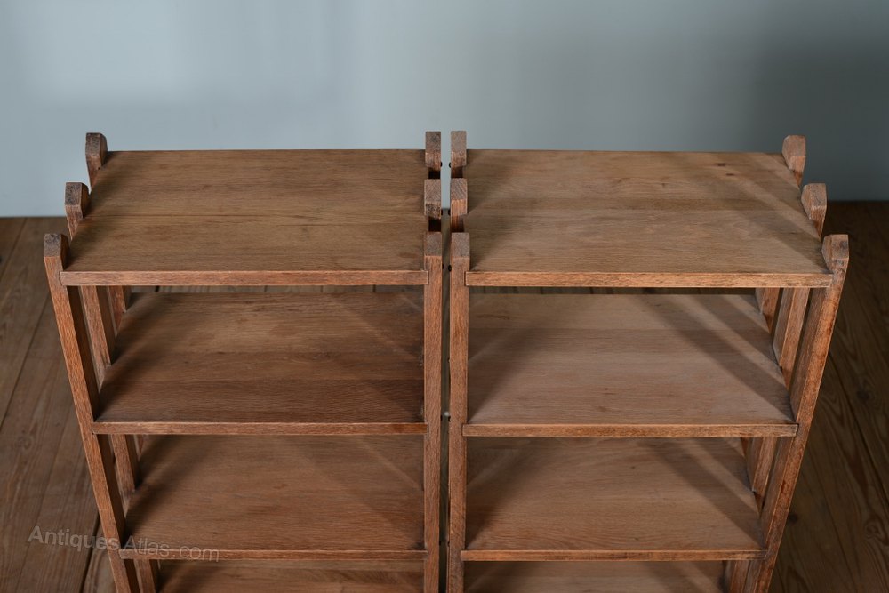 Arts and Crafts Open Front Oak Slope-Shelf Bookcas