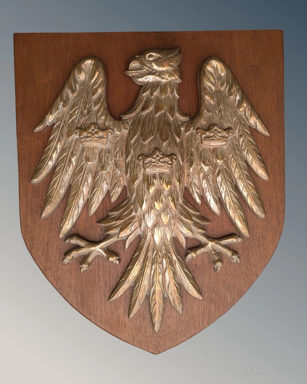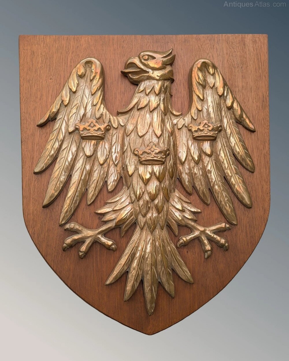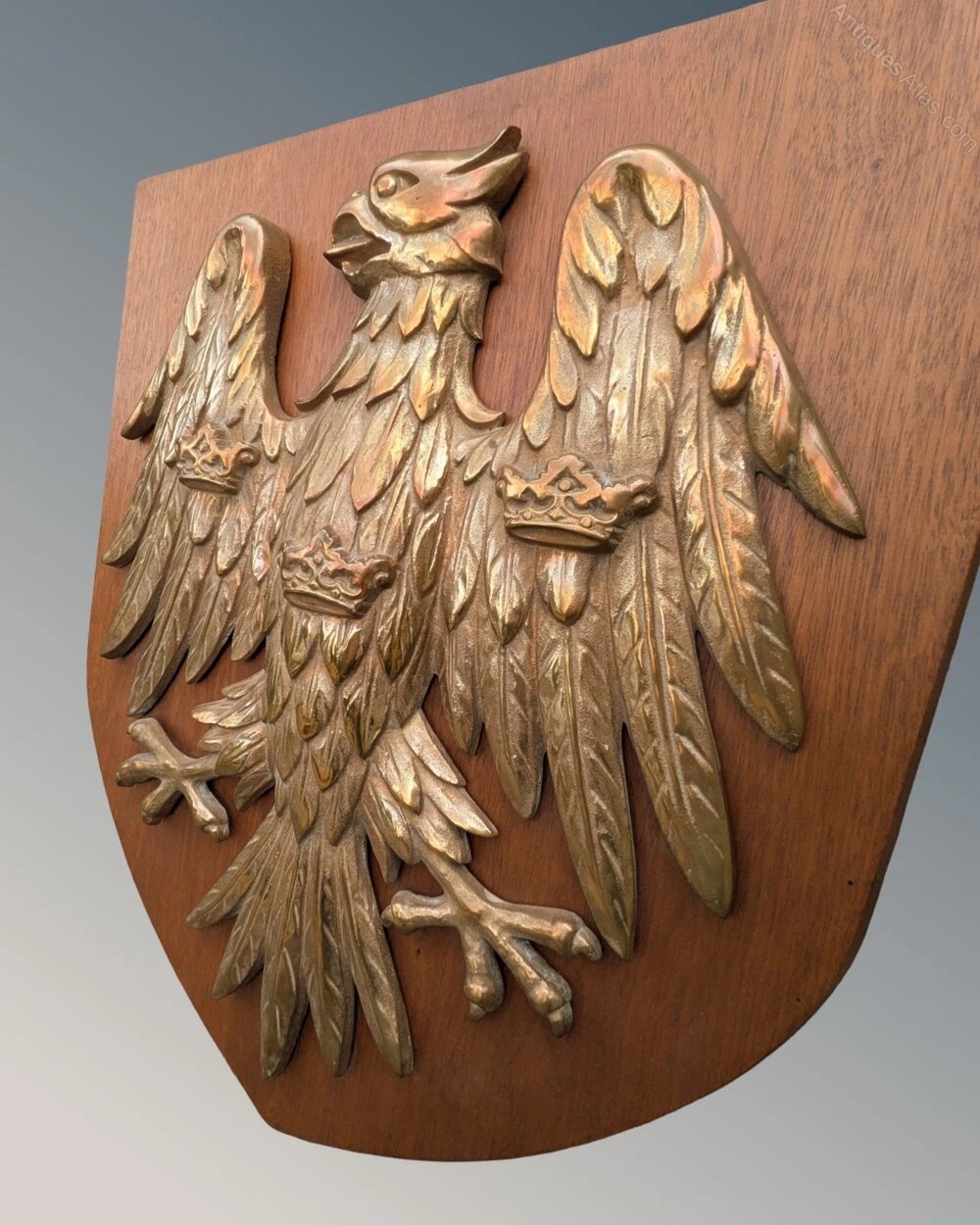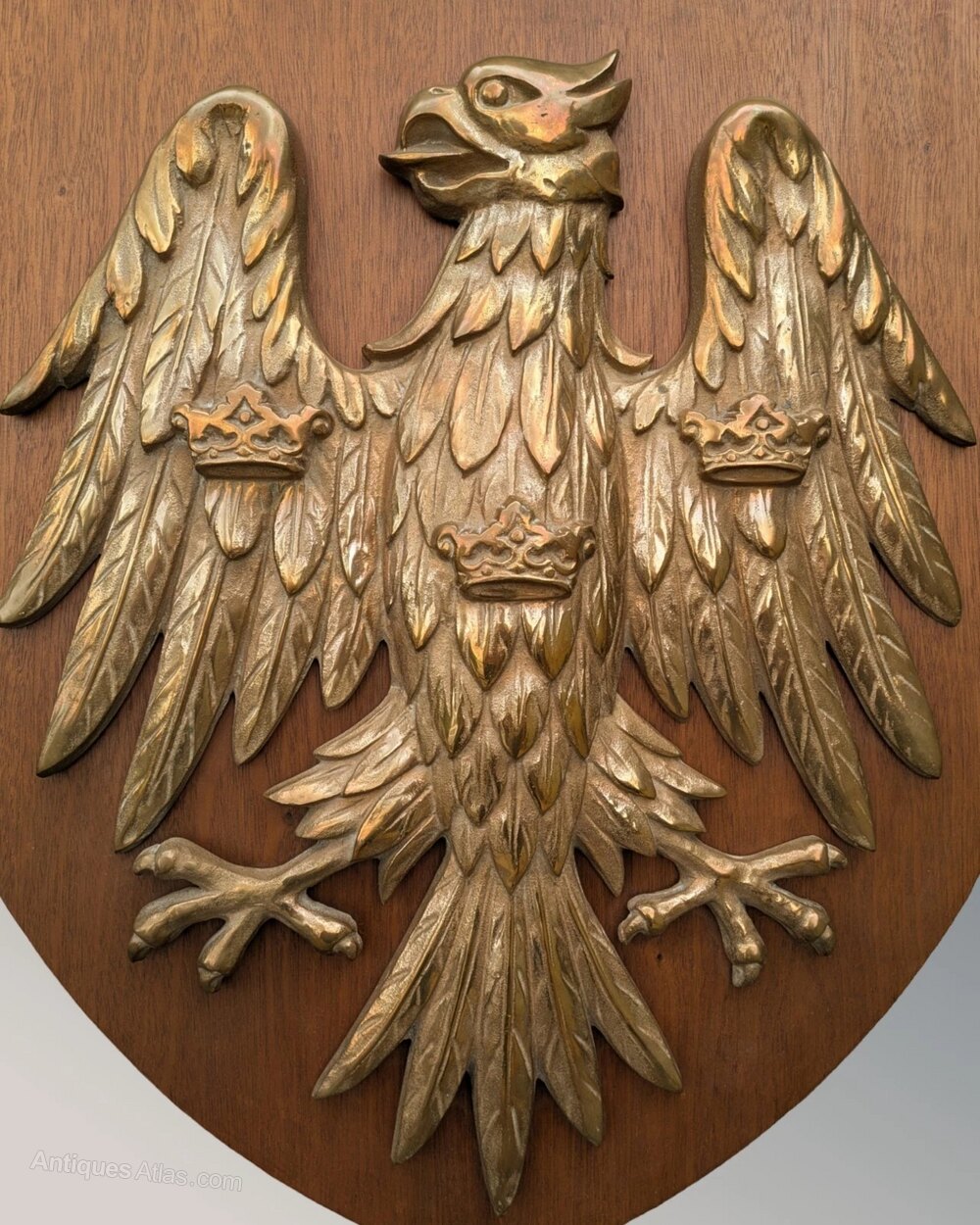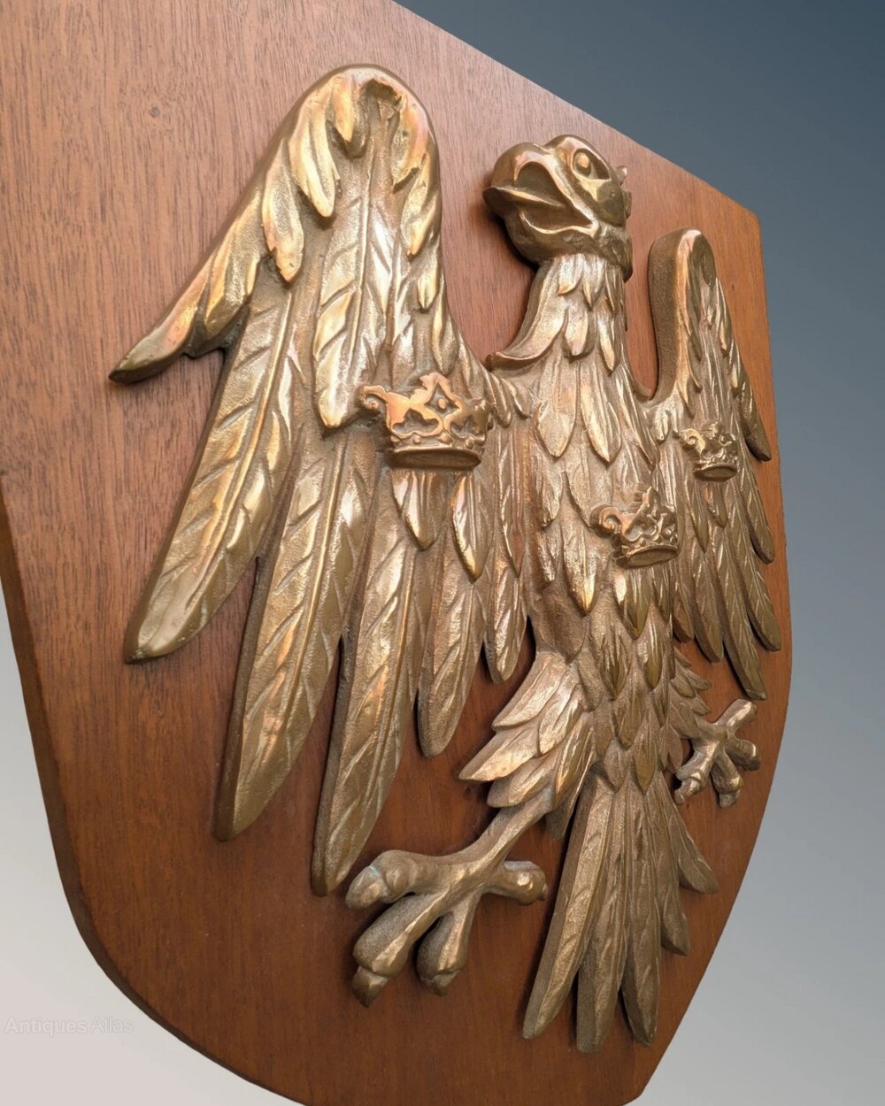 Pair of Antique Solid Bronze Eagle Crest Shields