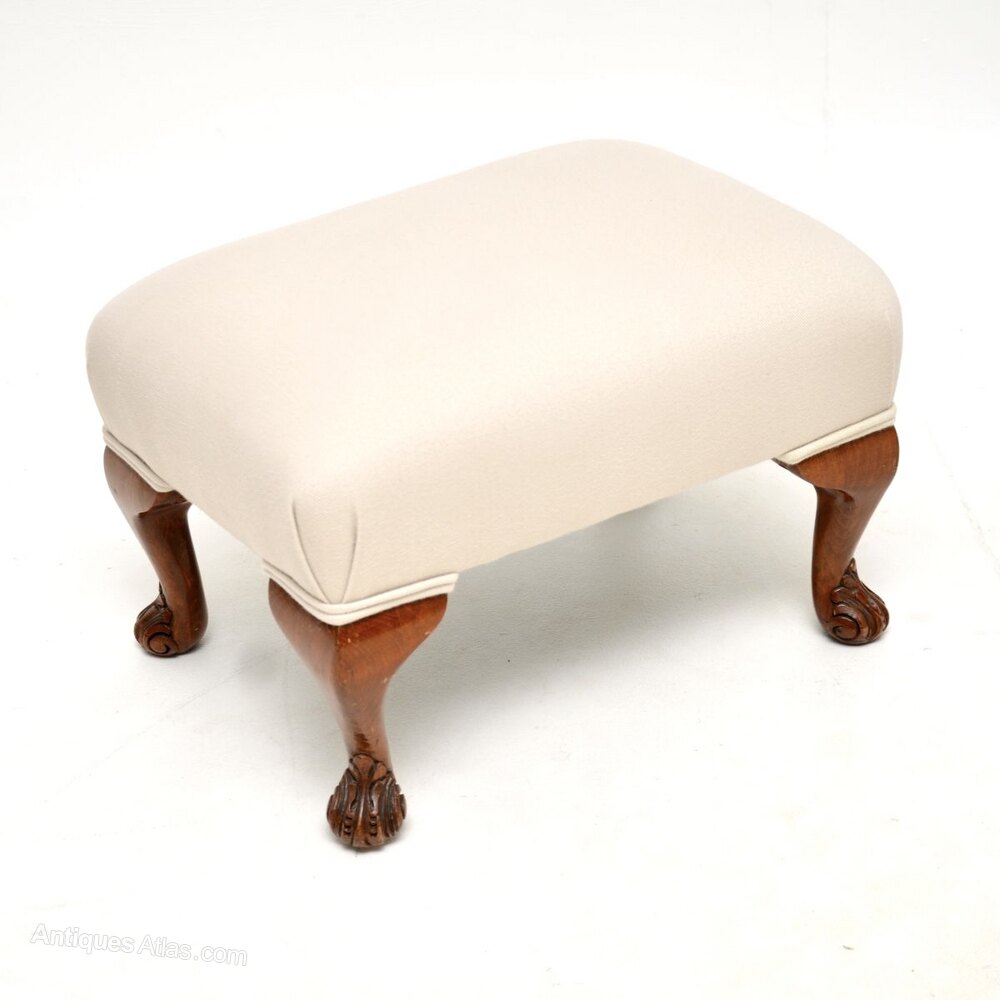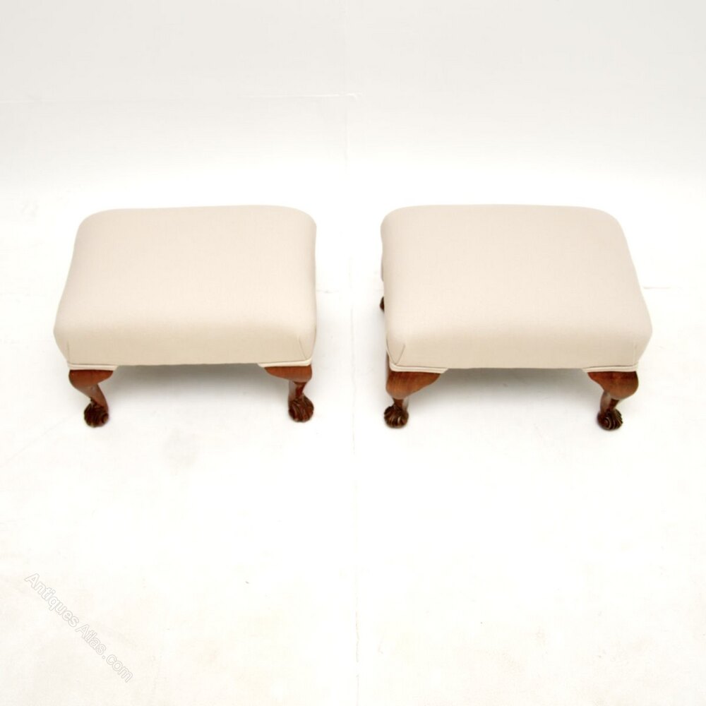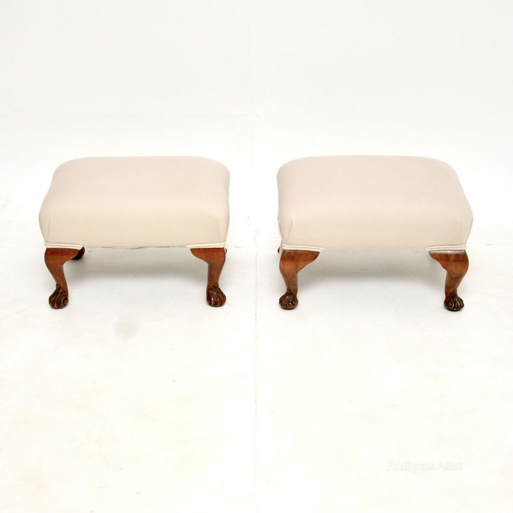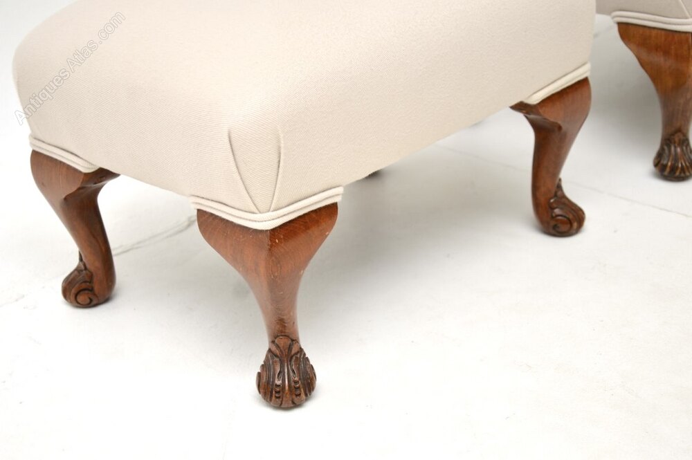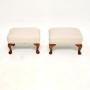 A beautiful pair of antique walnut foot stools. They were made in England, and date from around the 1930’s.