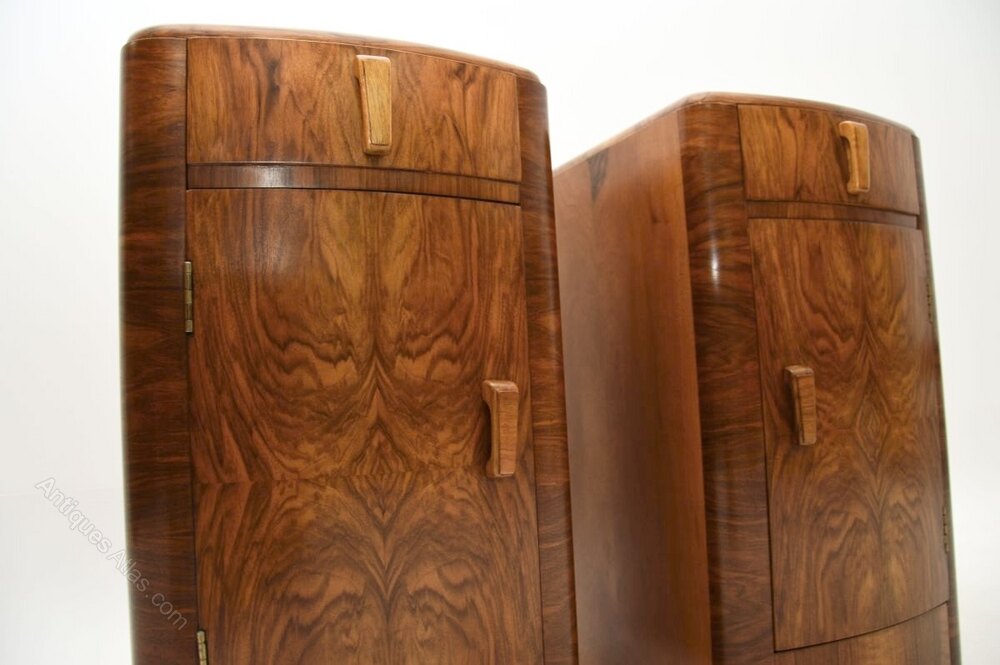 Pair of Art Deco Walnut Bedside Cabinets