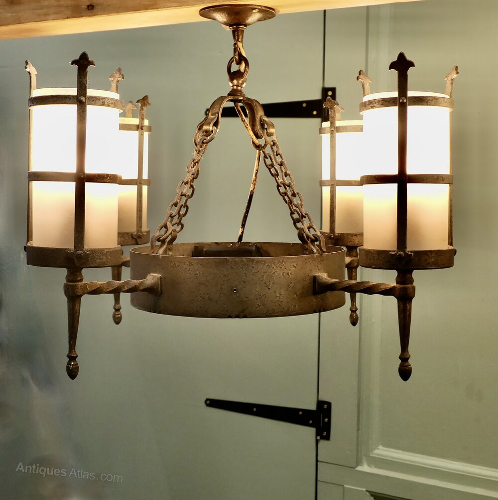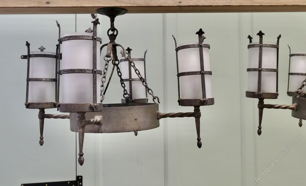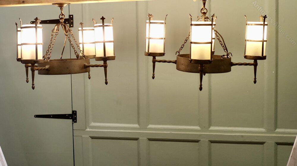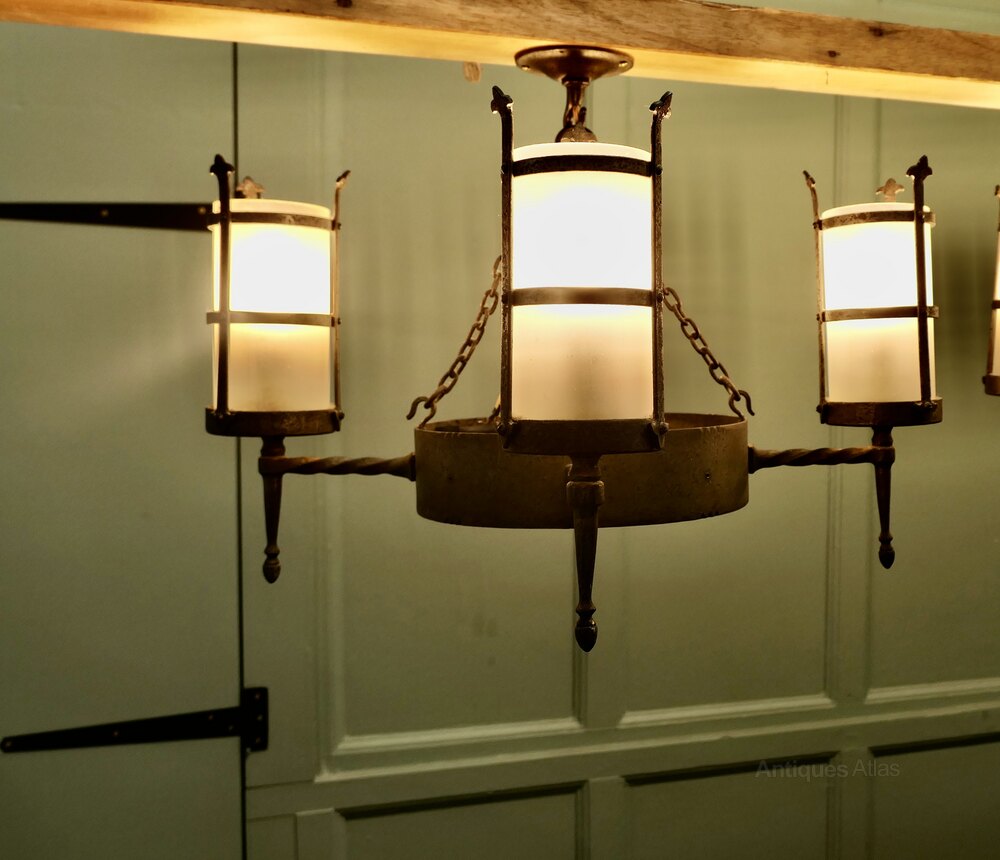 Pair of Arts and Crafts 4 Arm Ceiling Lights