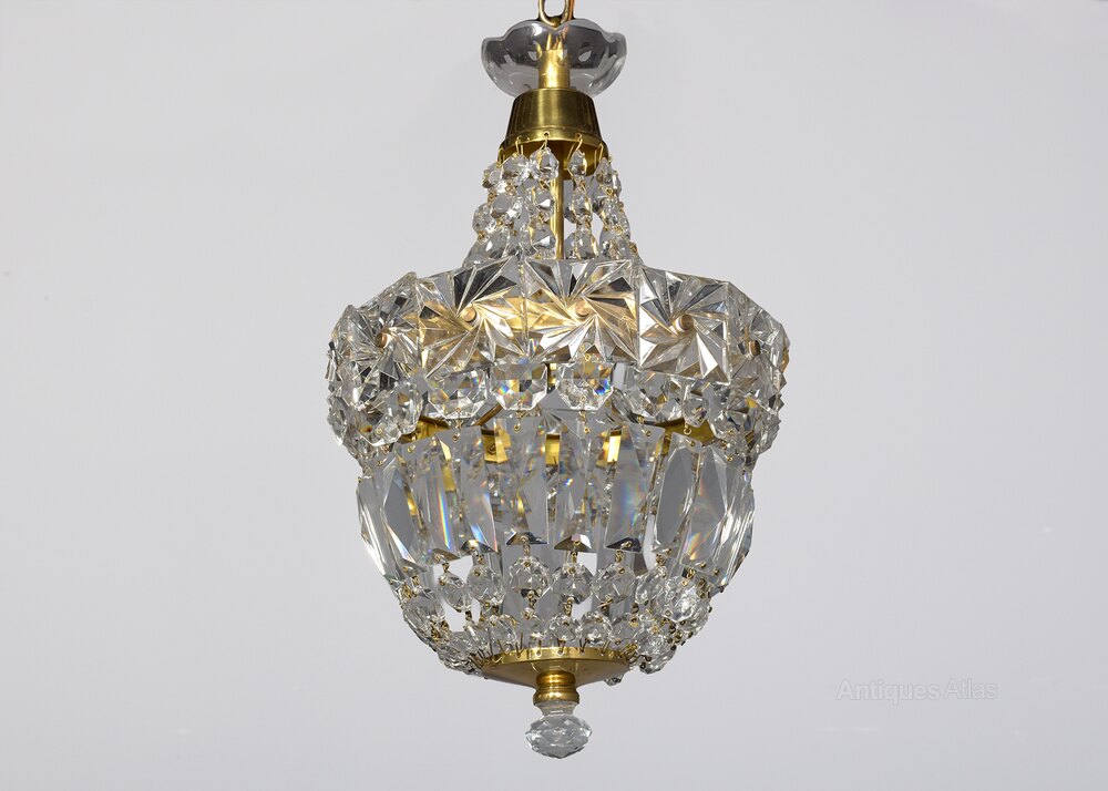 chandeliers with single lamp fitting with tapering facets of glass and