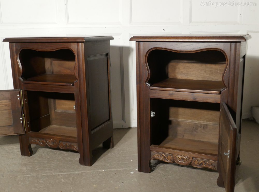 Good Pair of French Walnut & Marble Bedside Cabinets