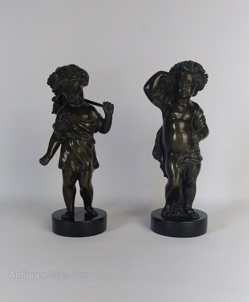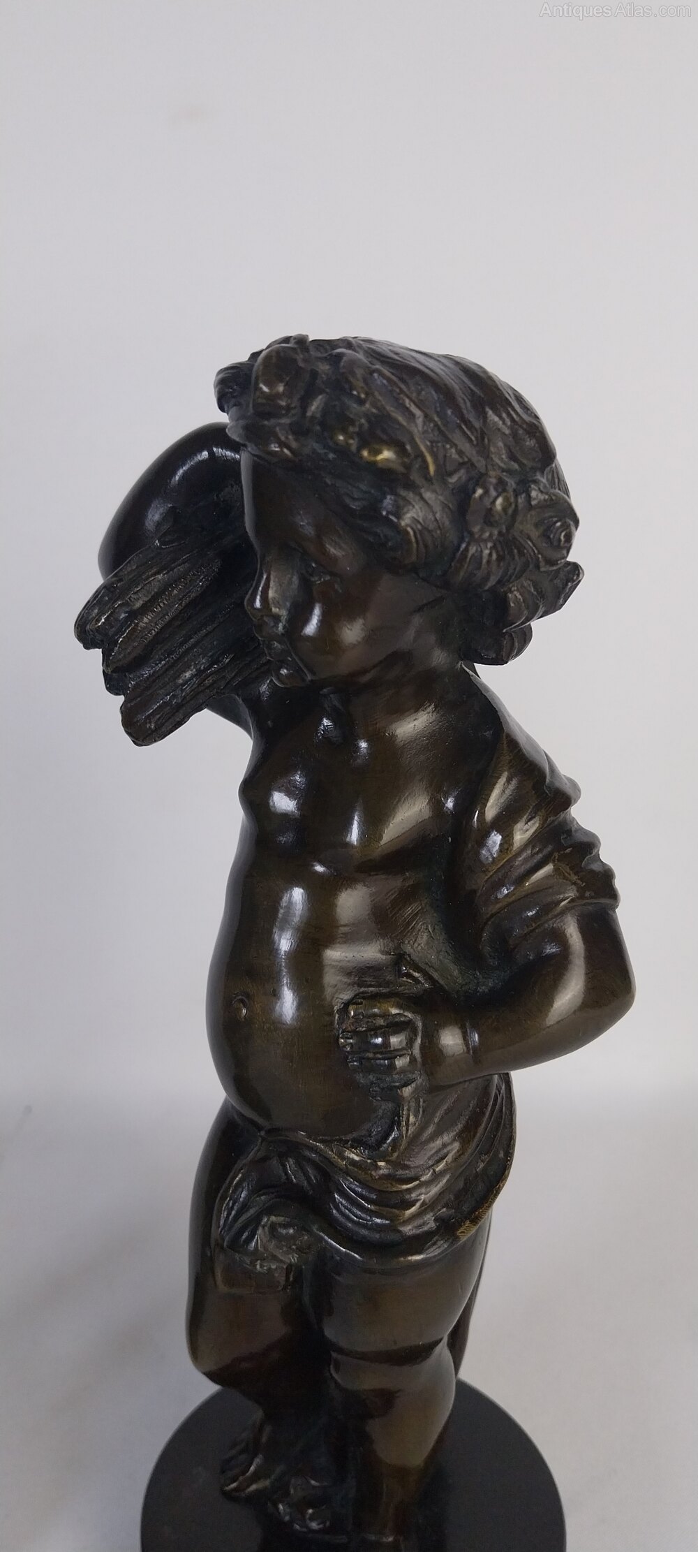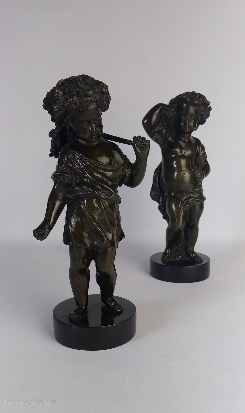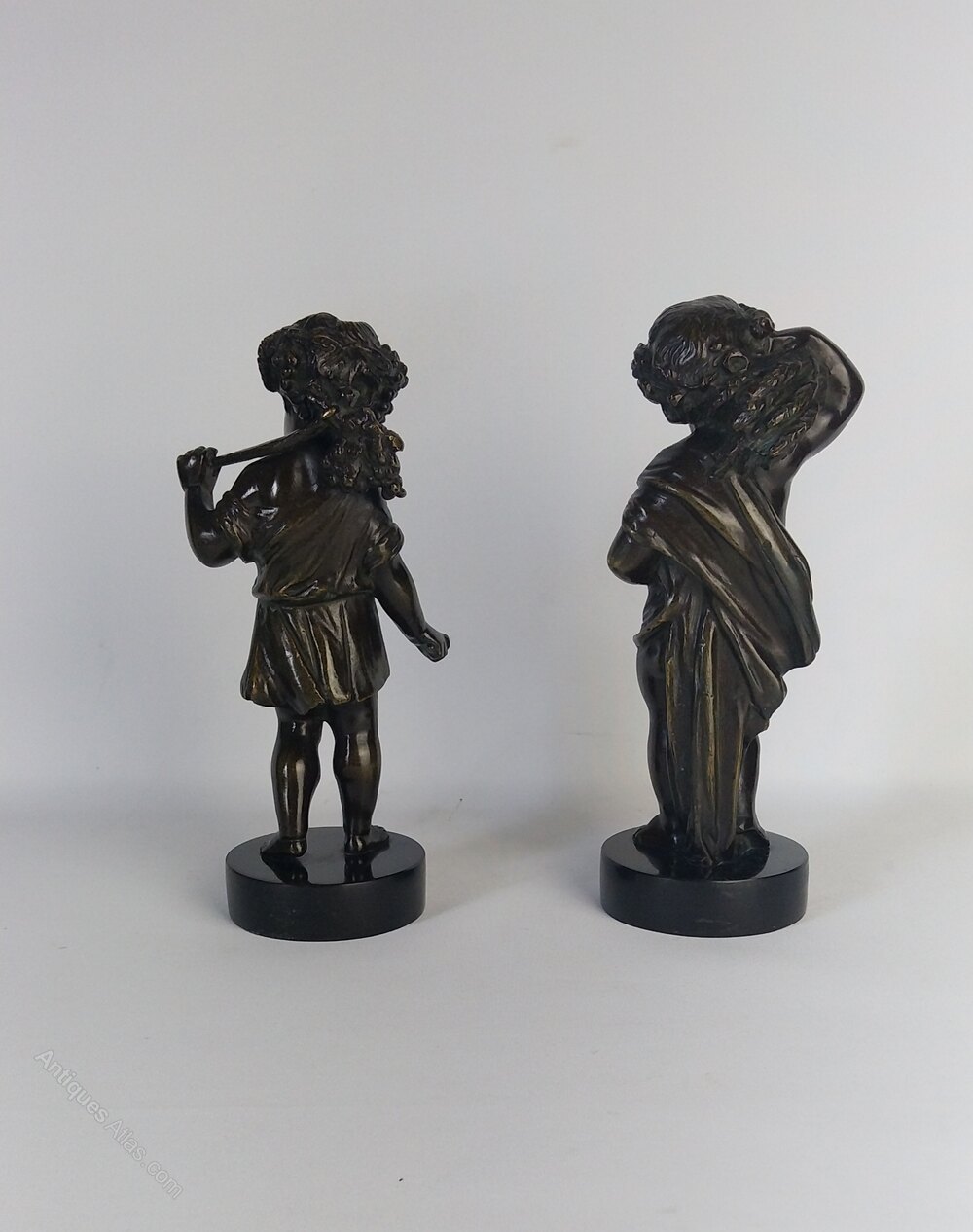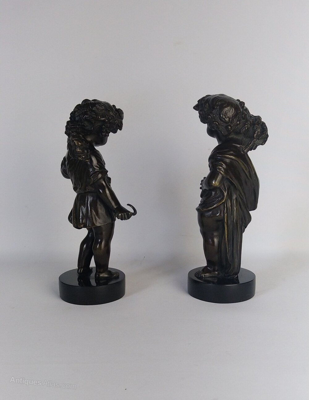 Item: Pair 19th Century Bronze Cherubs Sculpture - Neoclassical Harvest Allegory Putti Statues