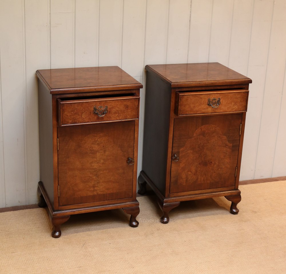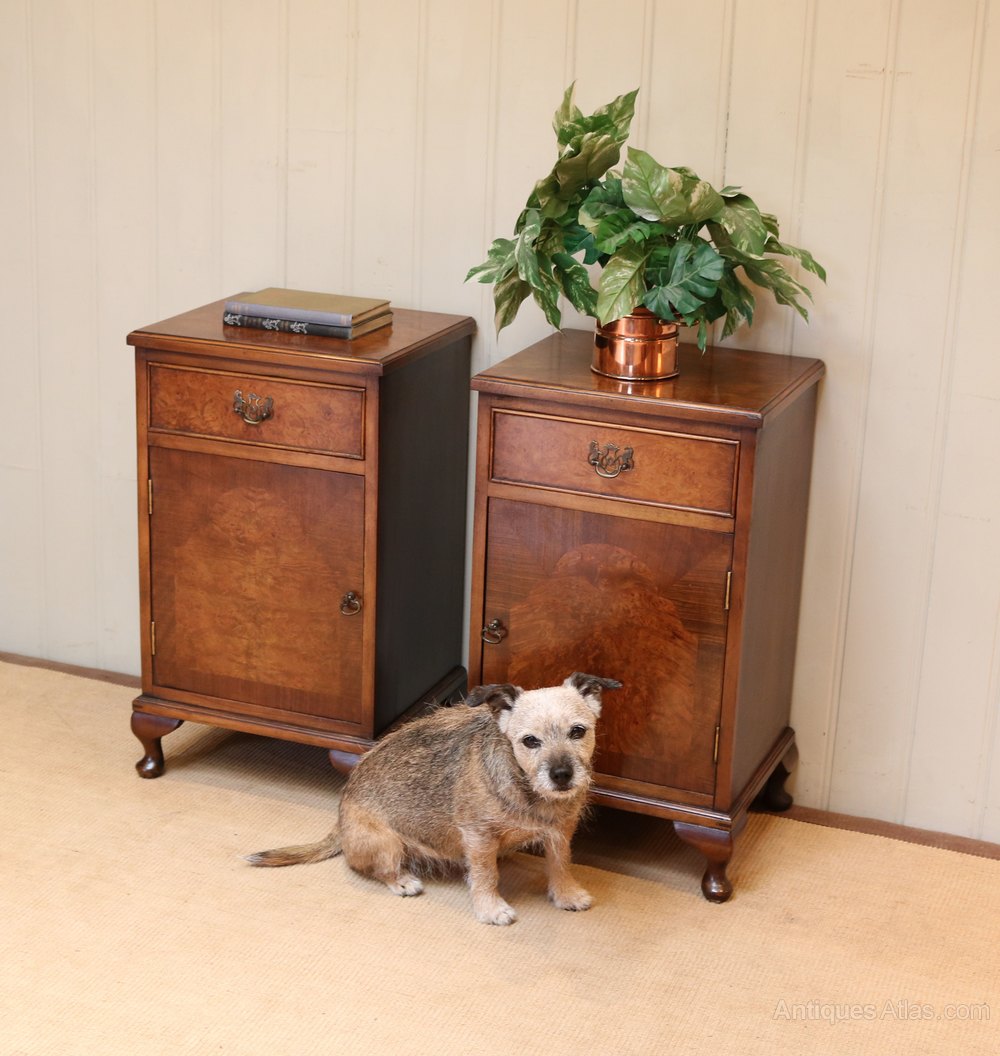 Pair Of Burr Walnut Bedside Cabinets