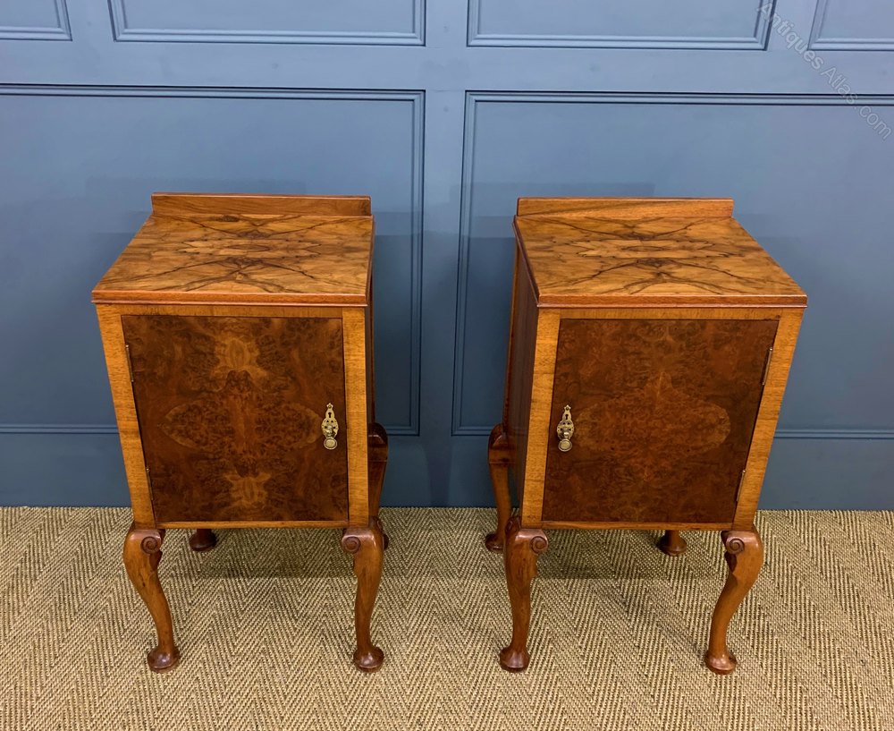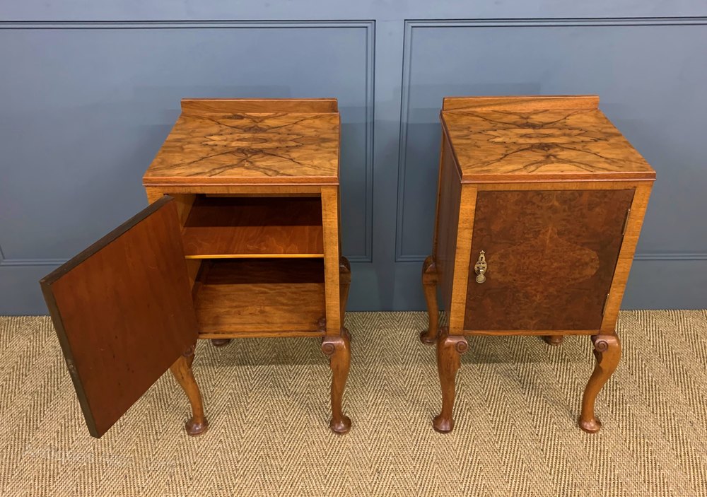 Pair of Burr Walnut Bedside Cupboards