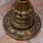 The circular capital features a rich leaf-like carving, supporting a pleated lampshade.