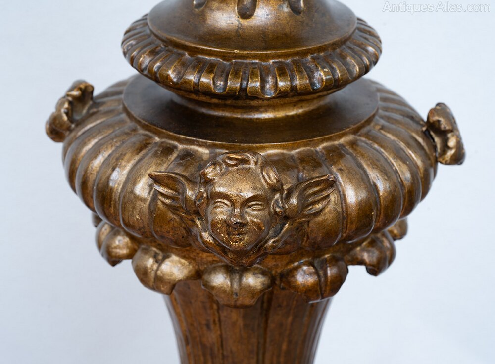 Antique Victorian Gilt Wood Floor Lamp