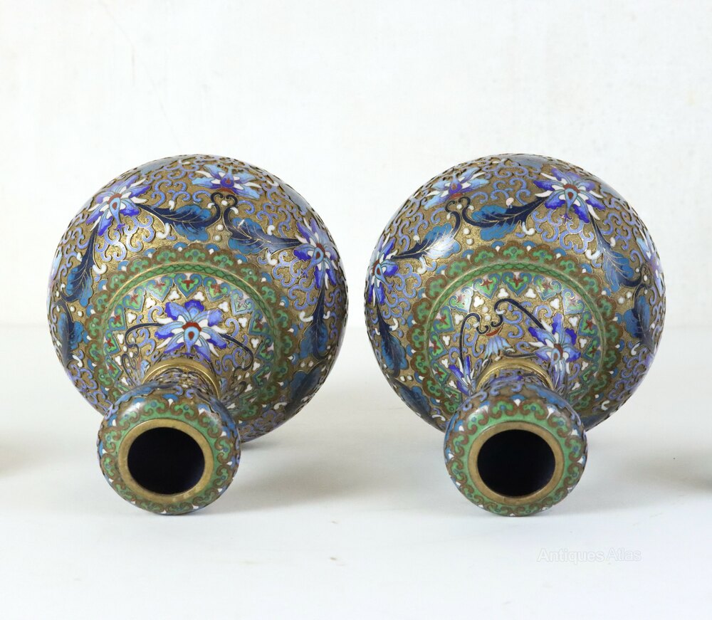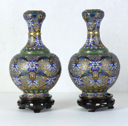 Pair of Chinese Champlevé Enamel Vases