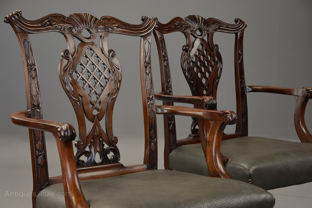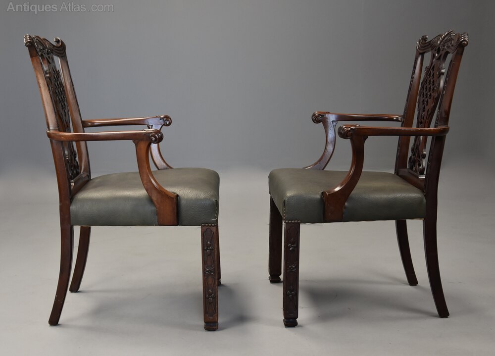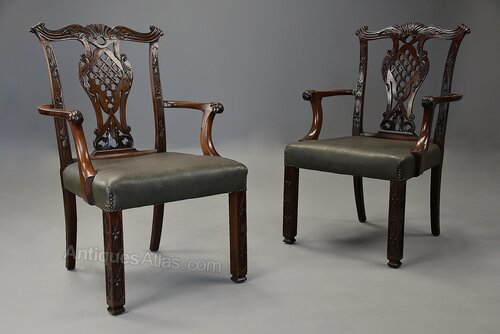 A pair of fine quality late 19th century mahogany open armchairs in the Chippendale style.