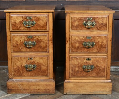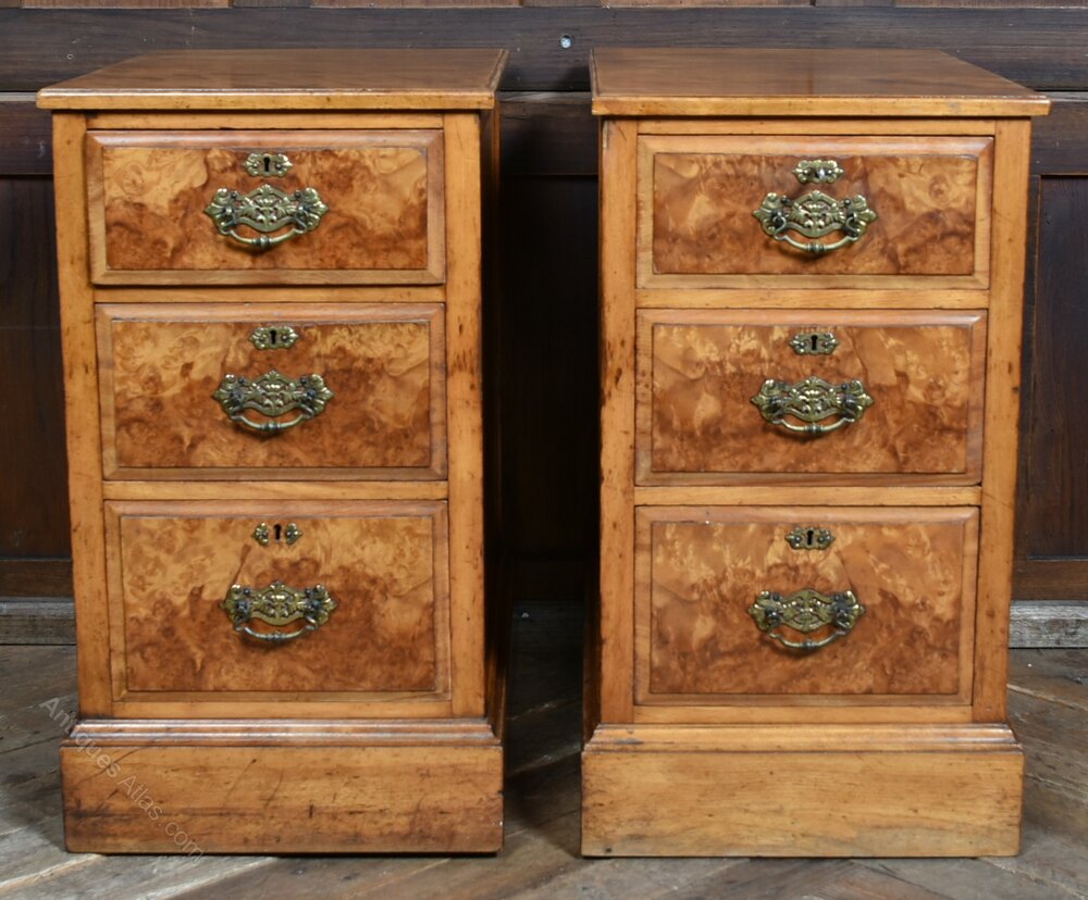 Pair Walnut Bedside Cabinets / Chest of Drawers
