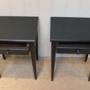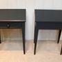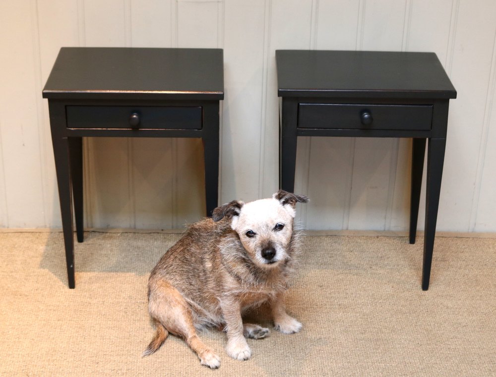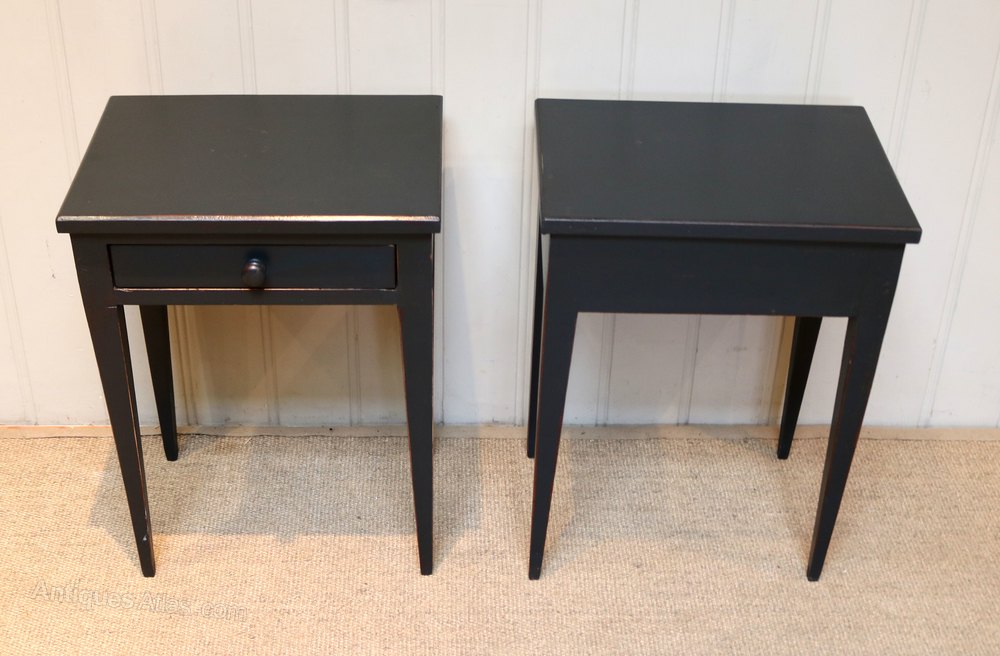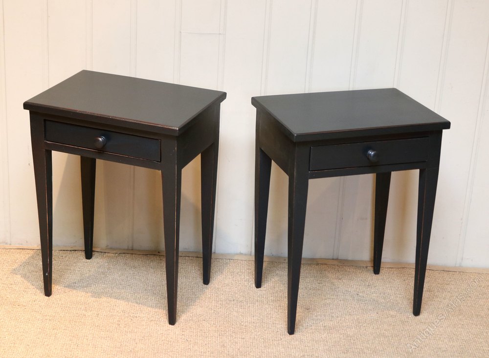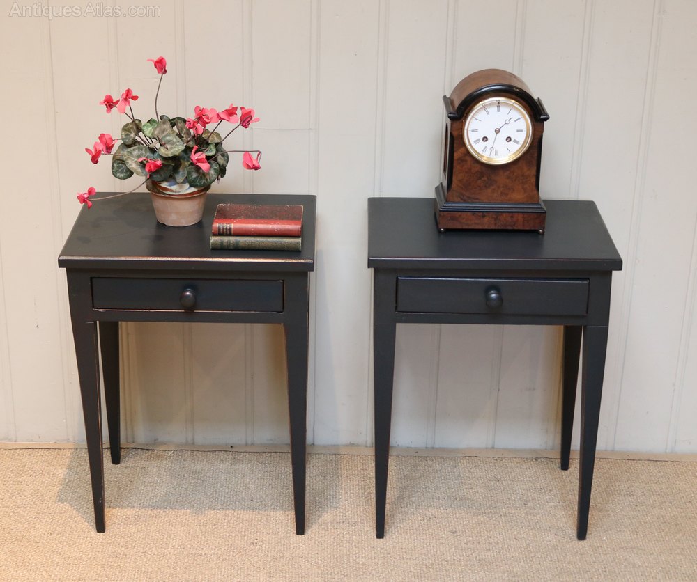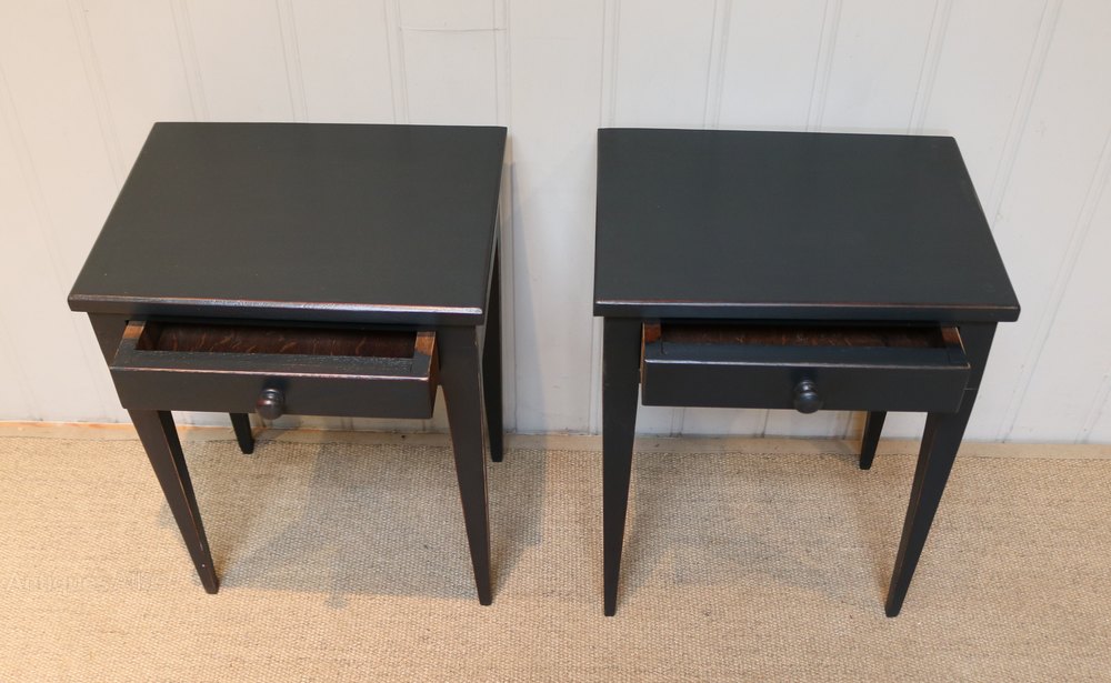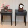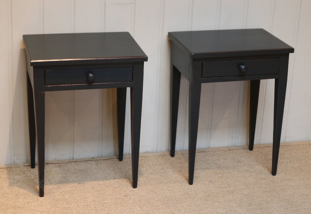 Pair of Edwardian painted antique tables having small top drawers ,raised on straight tapering legs . Painted in a colour similar to Farrow & Ball Drawing Room Blue