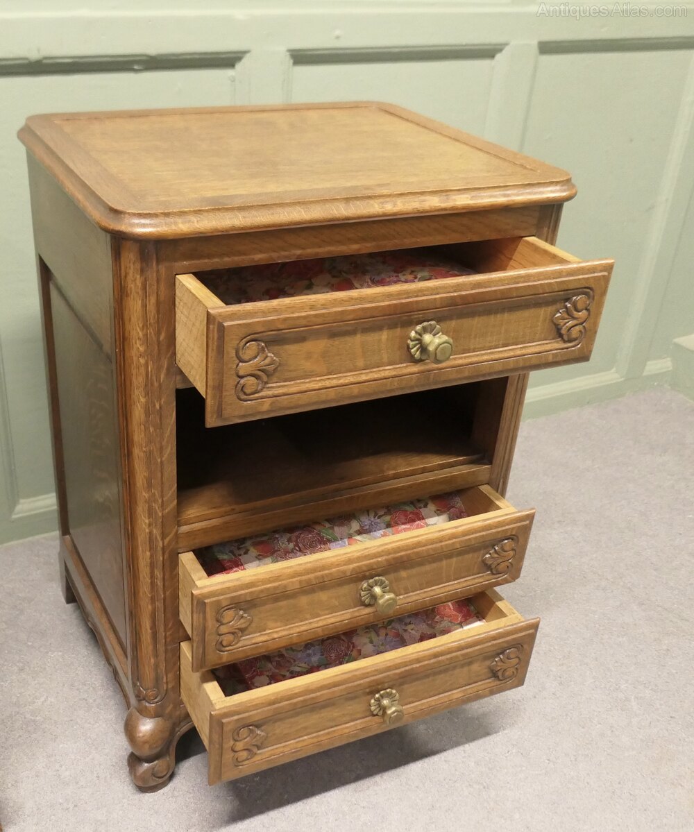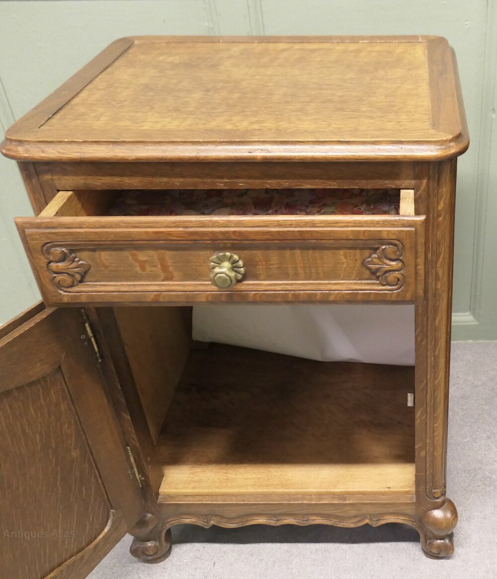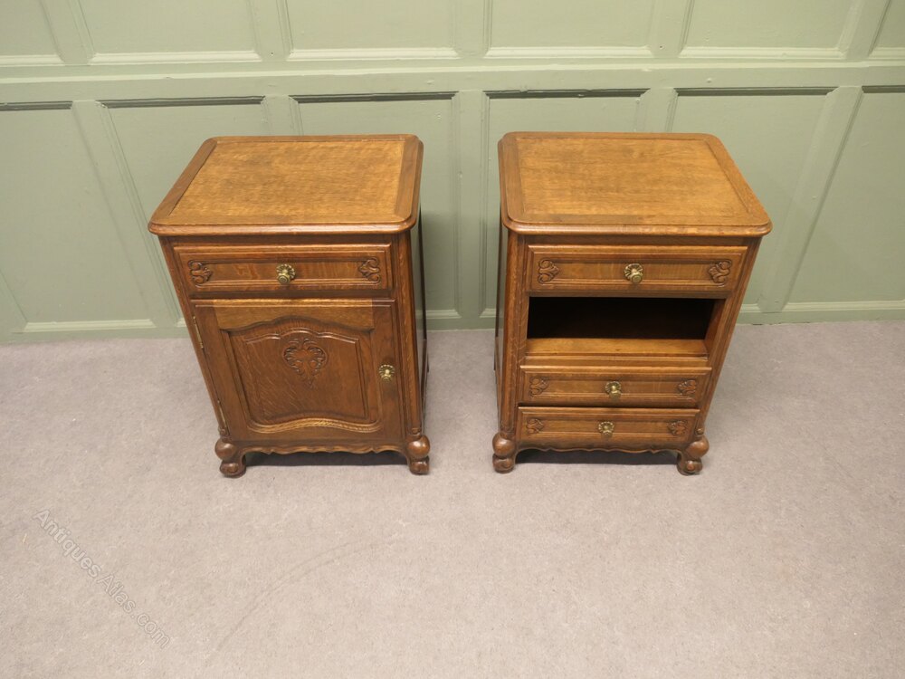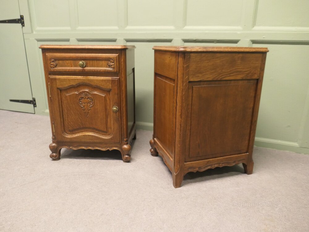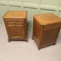 This is a pretty pair of cabinets or chevets, they are made in good quality Oak and are different designs. They both have a carved decoration on the front and on the feet with panelled back and sides.