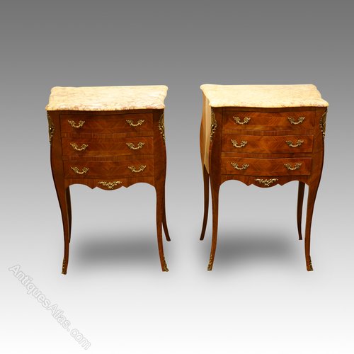 Here we have this elegant pair of bedside cabinets with marble tops.