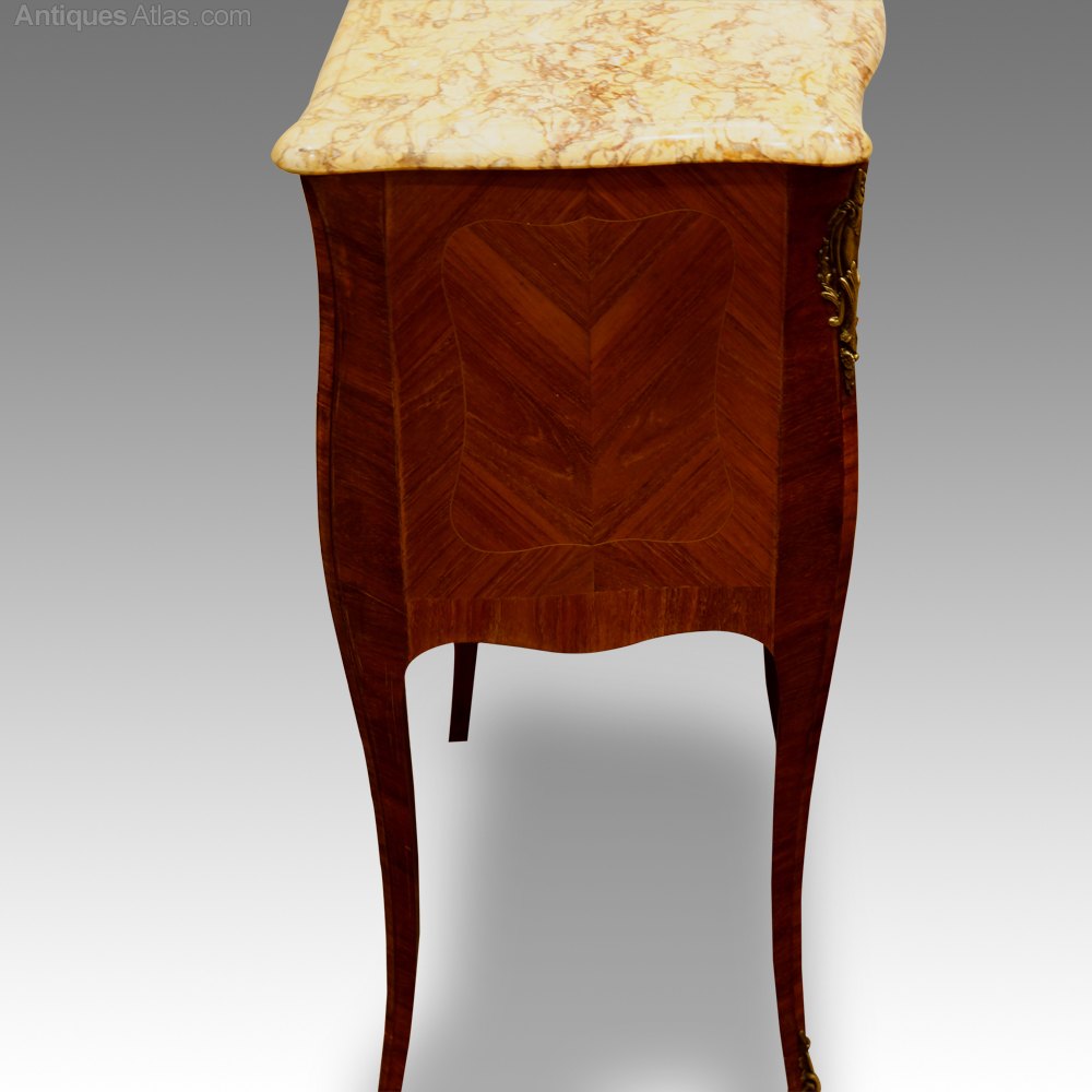 Each bedside cabinet is finished all around, are fitted with 3 graduted draed and with the original cast gilt brass handles and mounts.