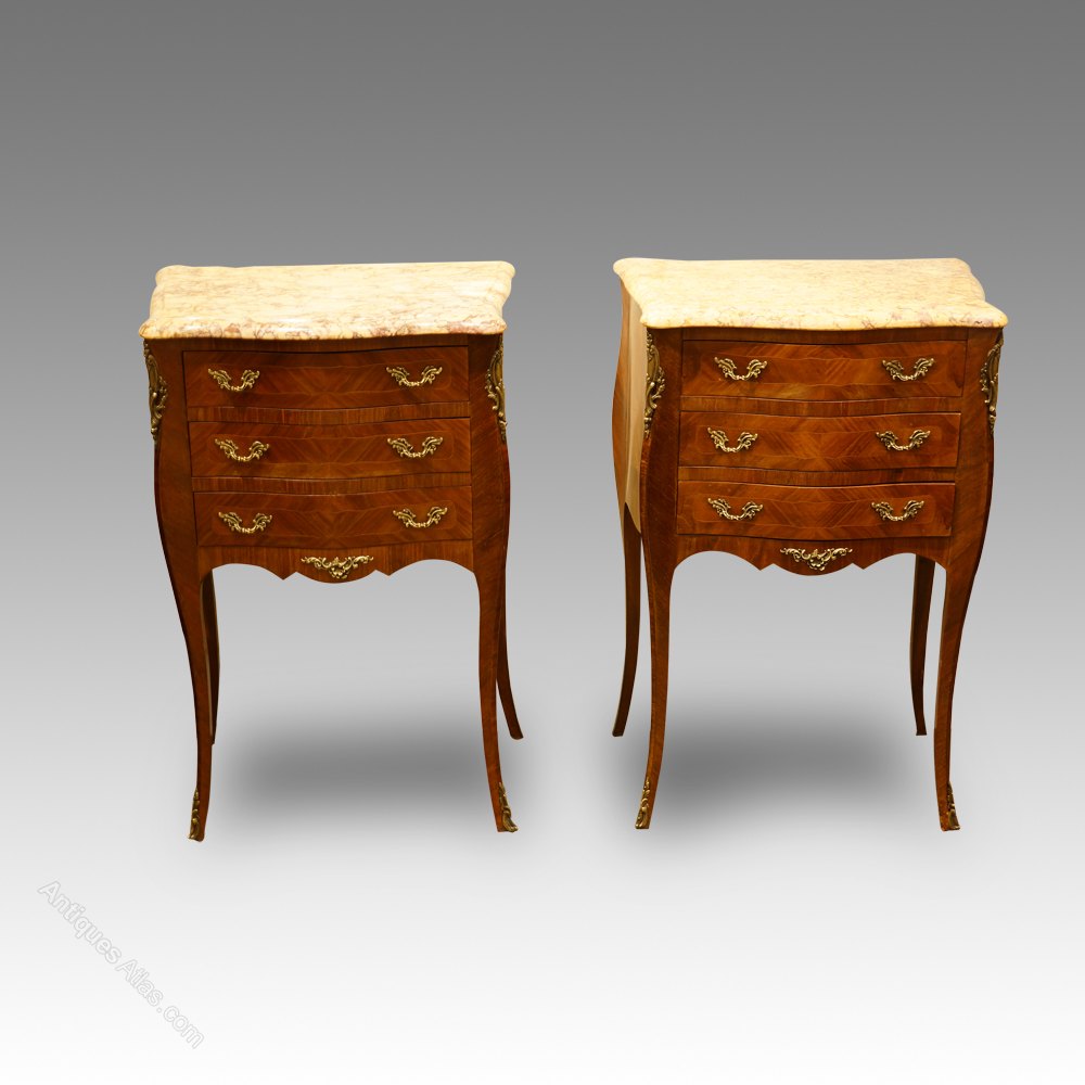 Pair of French walnut bedside cabinets