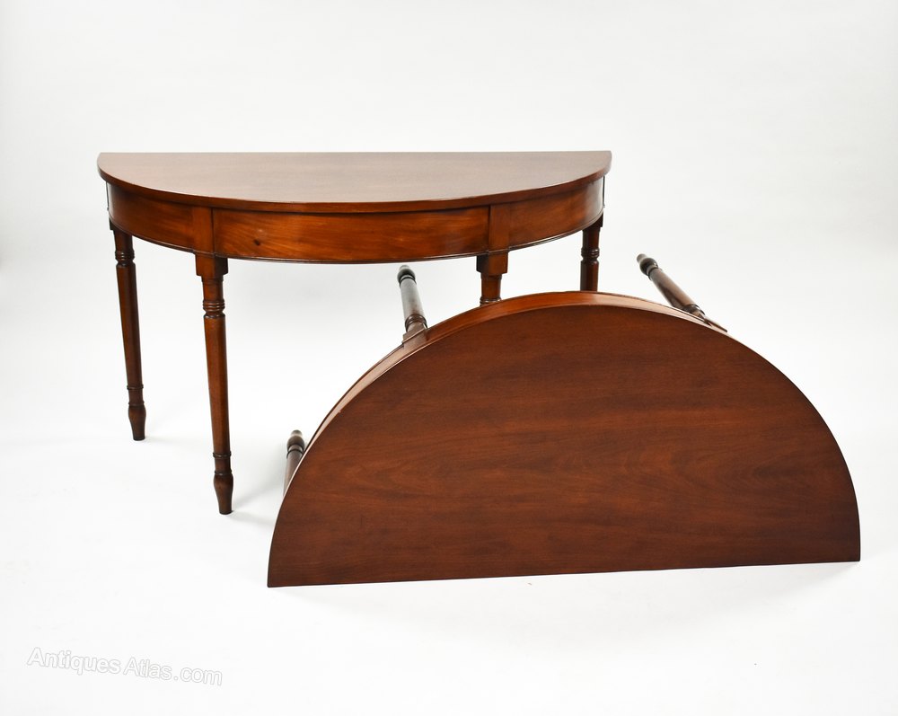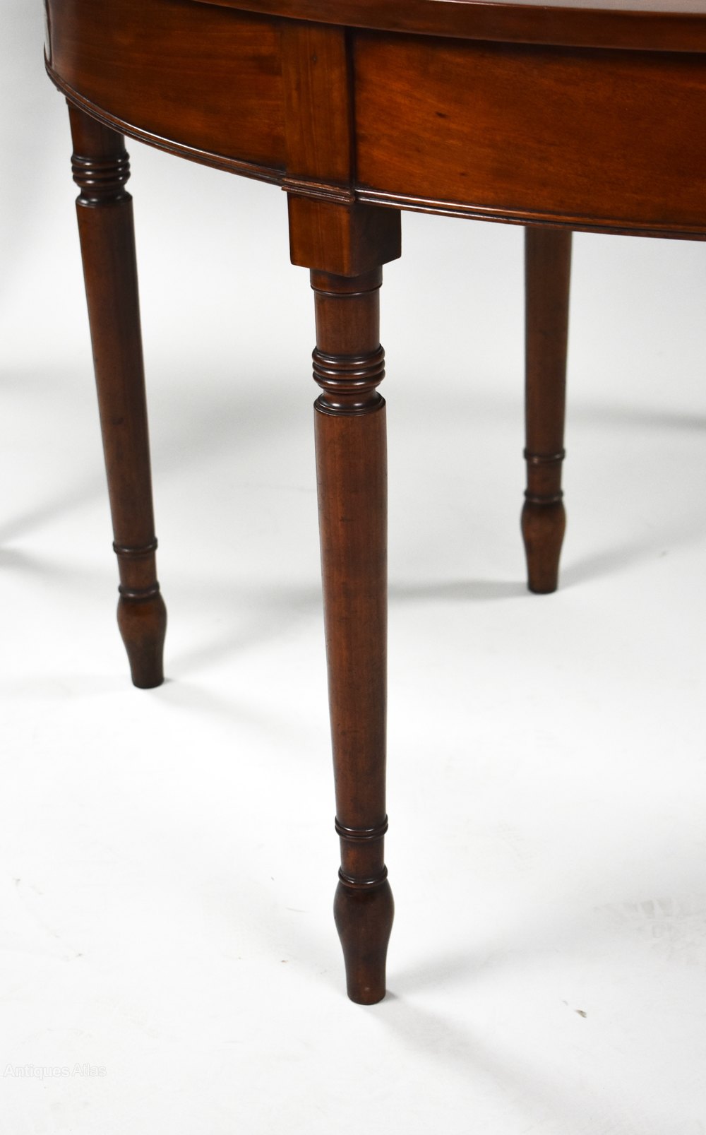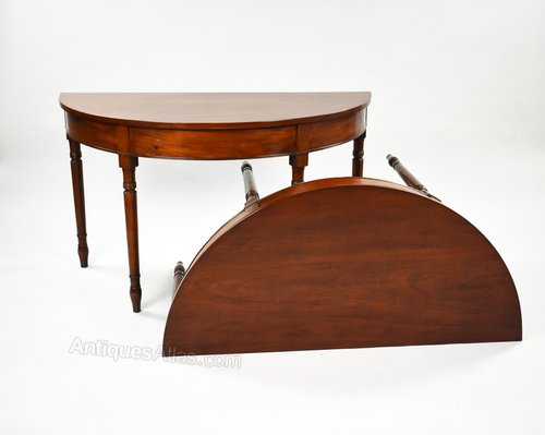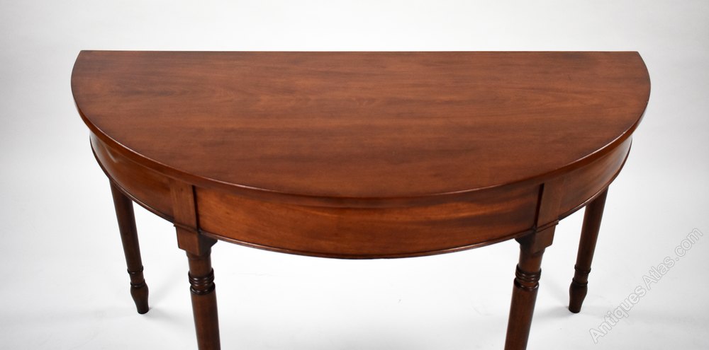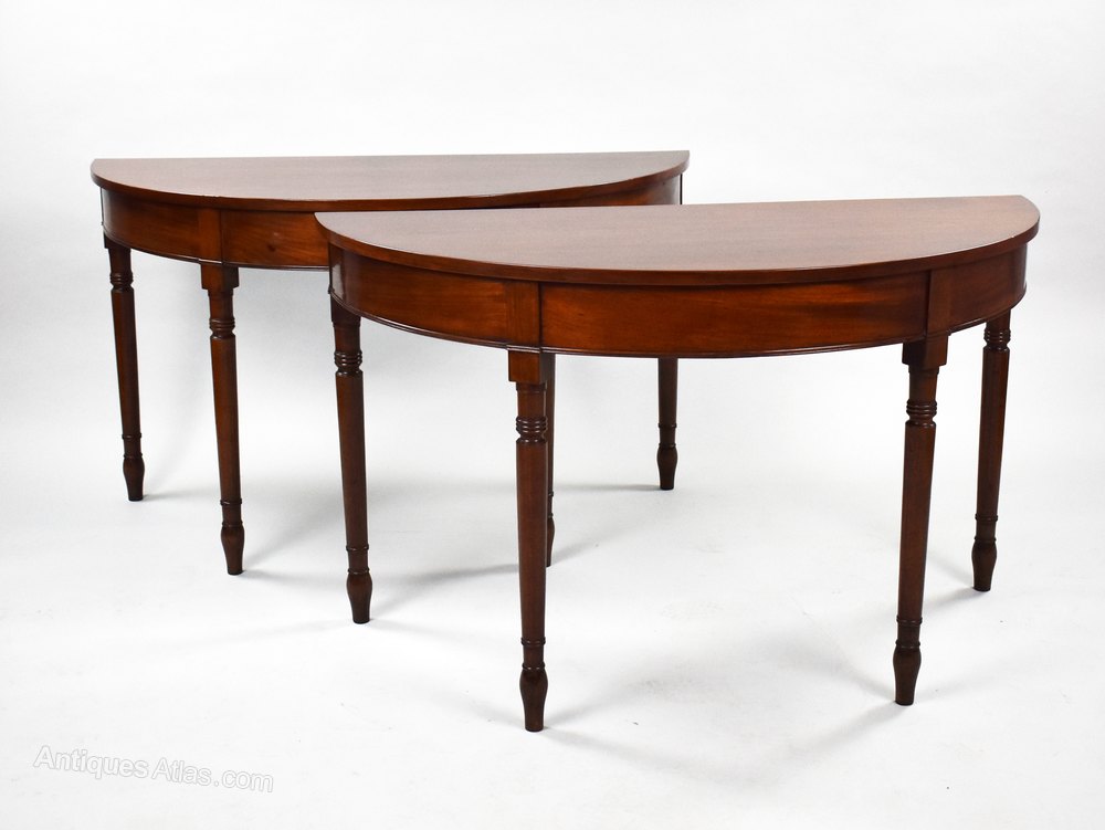 For sale is a good quality pair of George III mahogany console antique tables, standing on elegant turned legs. Both of the antique tables are in very good condition for their age.
