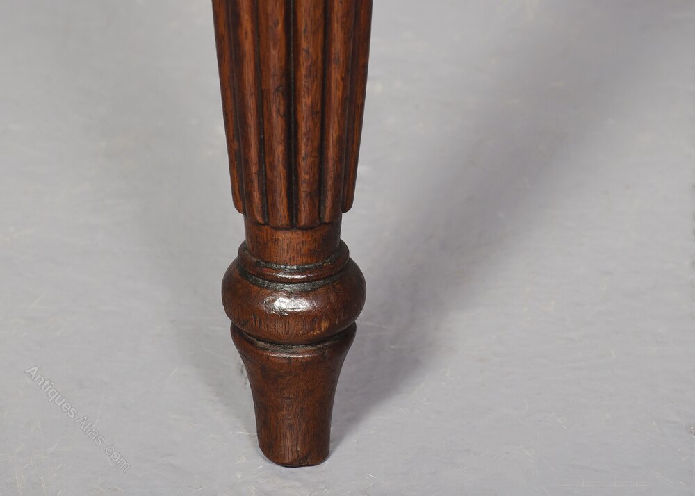 Circa 1820 and later. Pair of George III mahogany buttoned Burgundy coloured leather and brass-studded long stools. The tops in deeply buttoned, quality burgundy hide with brass studding around the edges and supported on tapering fluted George III legs. Sturdy and in excellent condition.