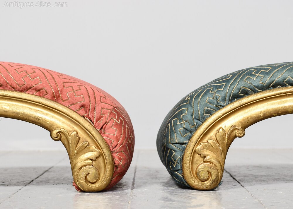 Pair of Gilded Curved Foot Stools
