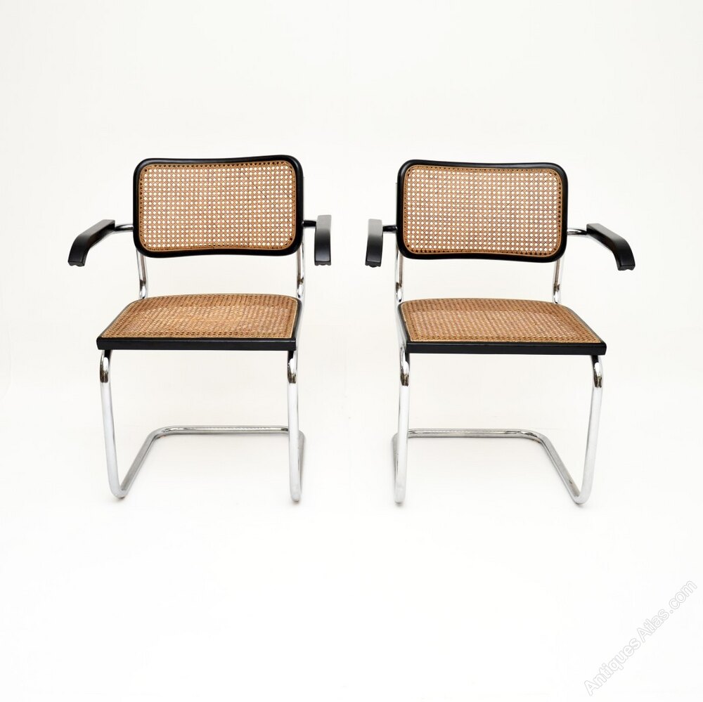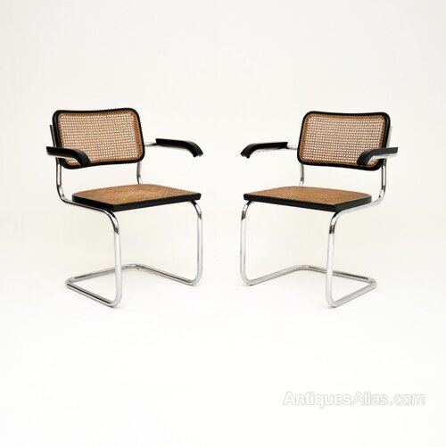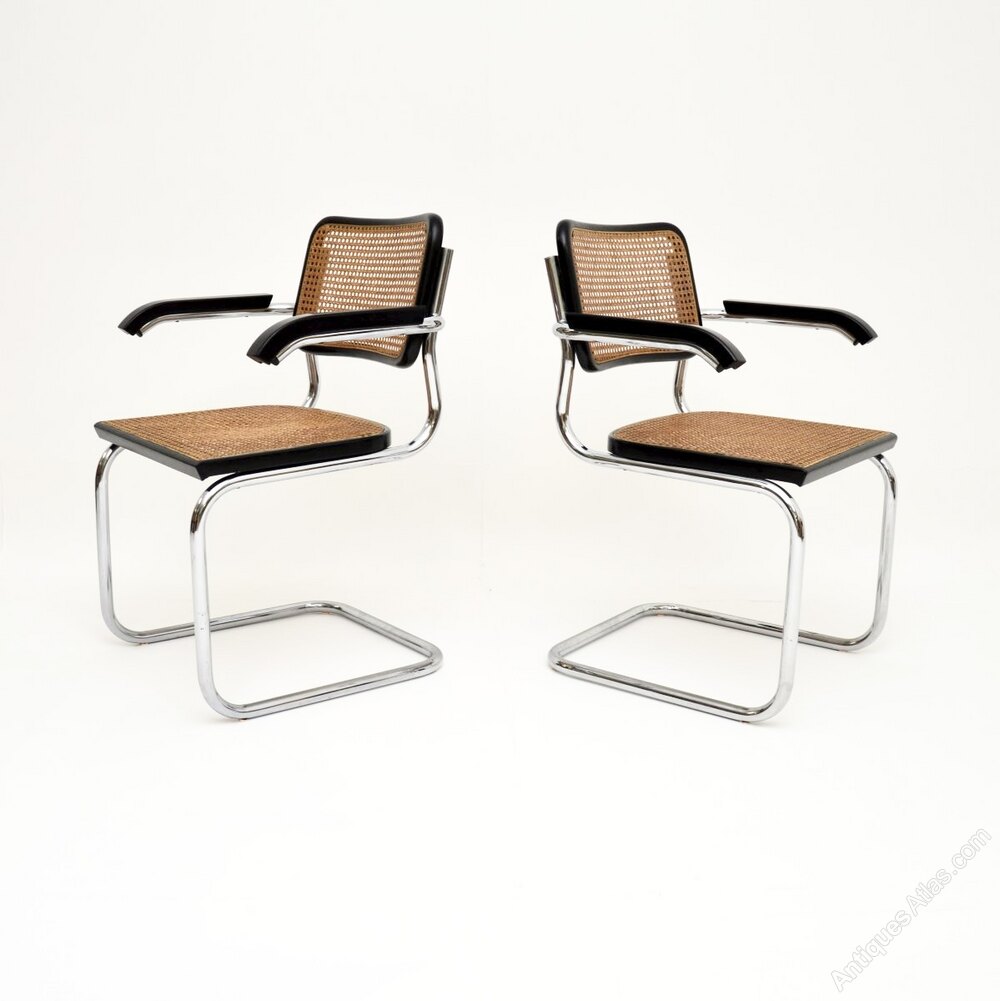 They are of outstanding quality, and are very comfortable, the cantilevered tubular steel frames gives them a nice gentle spring. The backs and seats are caned, the backs are stamped with the makers label.