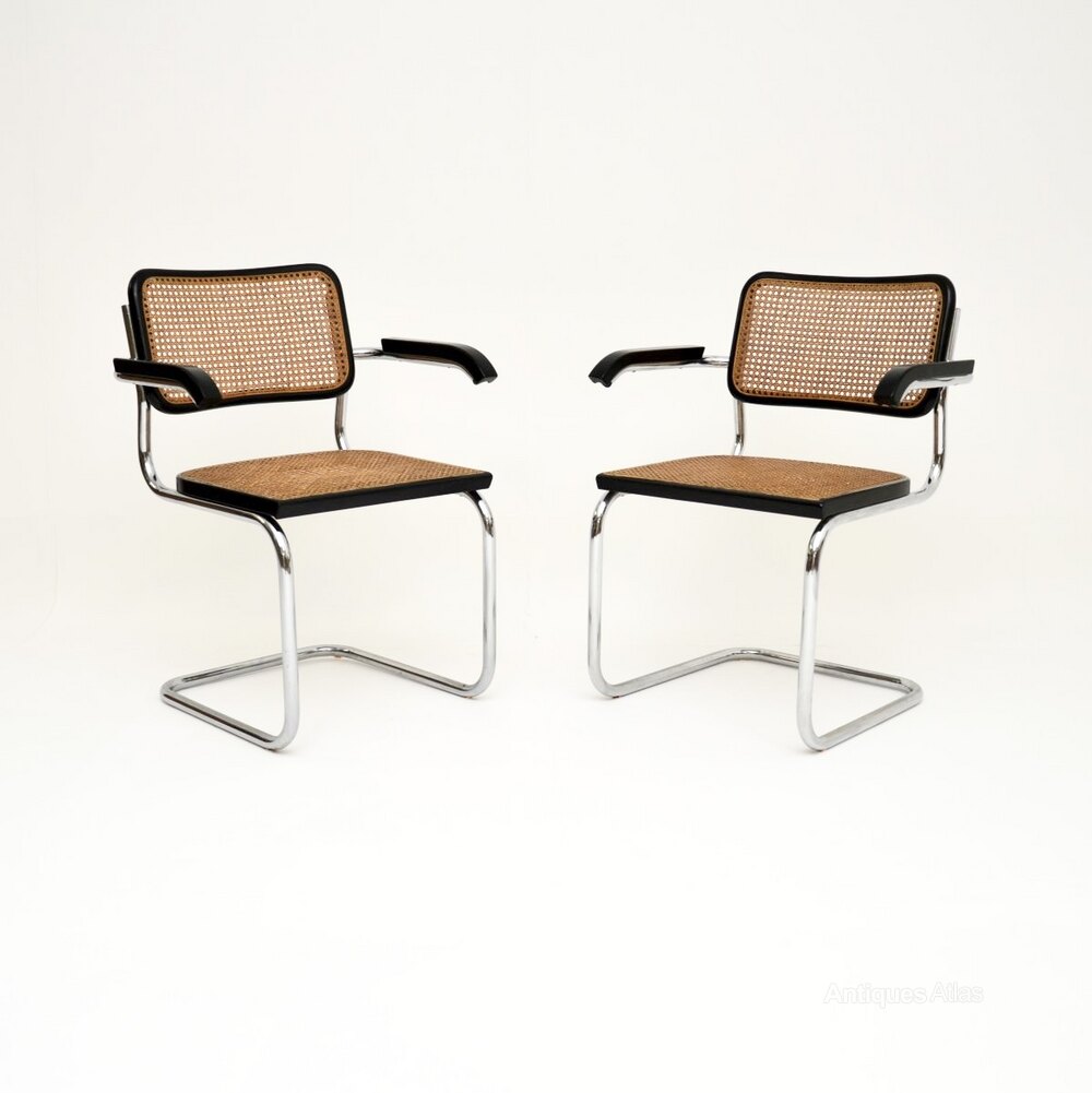 A stylish and iconic vintage pair of Italian Cesca dining chairs by Arrben, originally designed by Marcel Breuer in the 1920’s. These were made in Italy, they date from around the 1960’s.