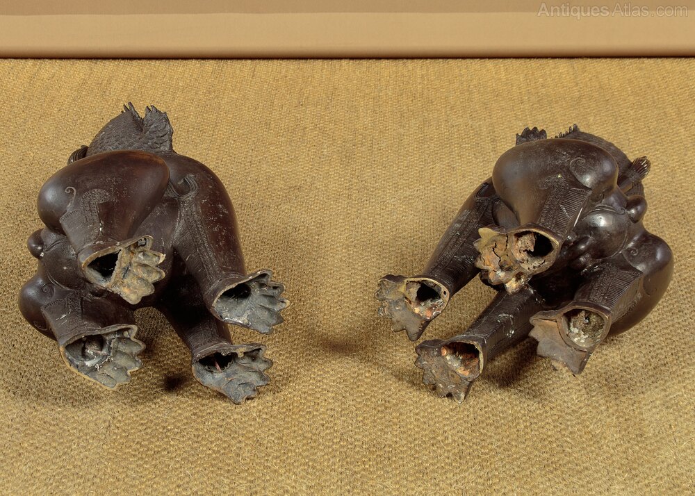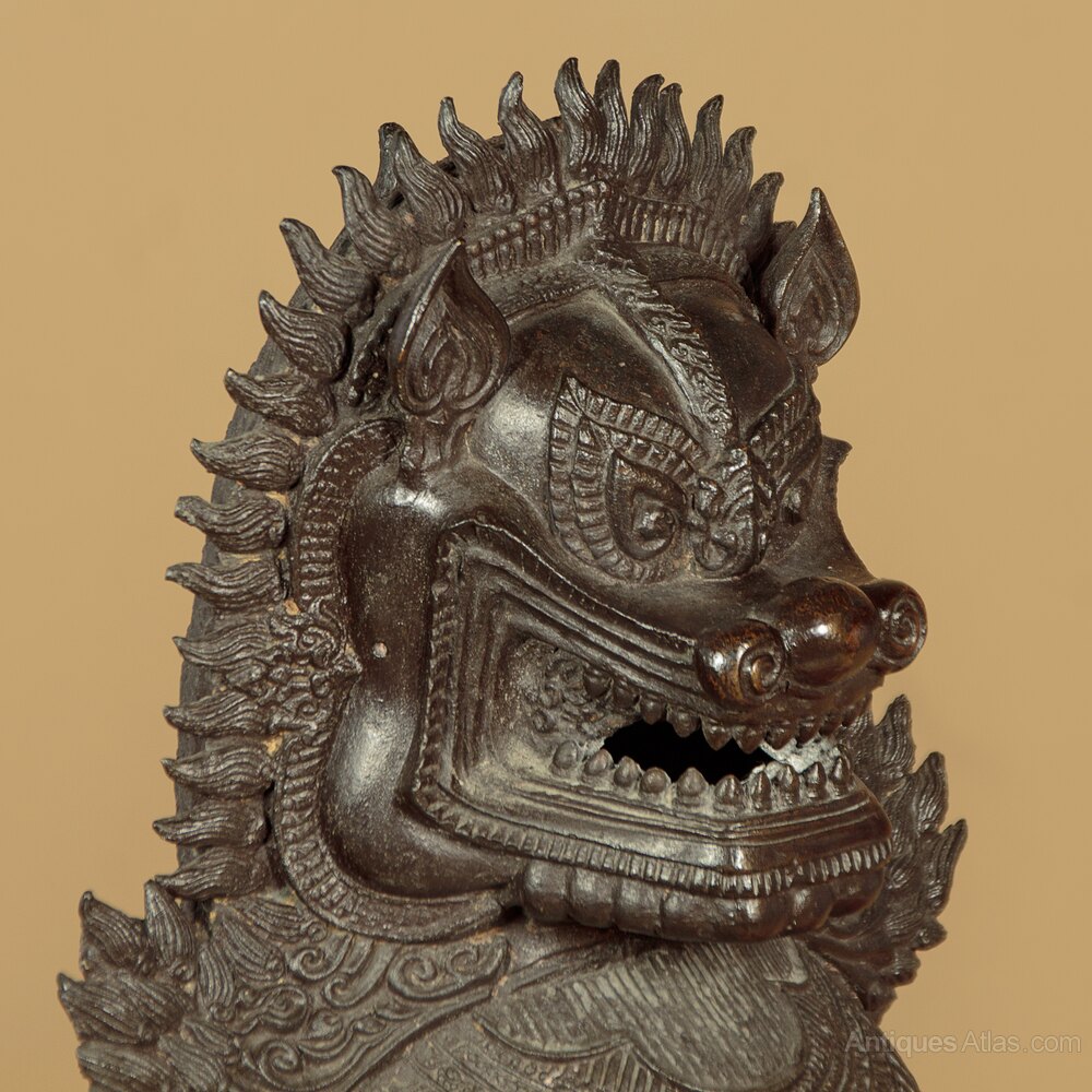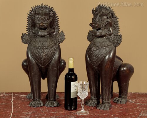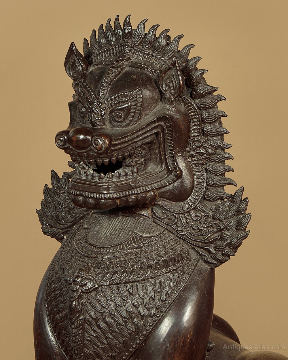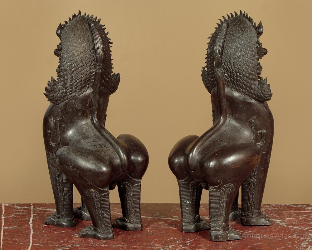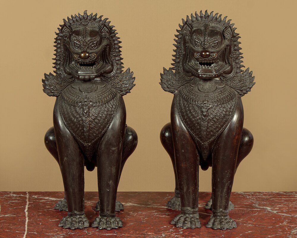 Superb pair of Bhuddist temple Singha or guardian lions, probably Thai, early 20th.c. Good large size and very well cast in bronze with excellent detail to the faces and mane. Very good condition.