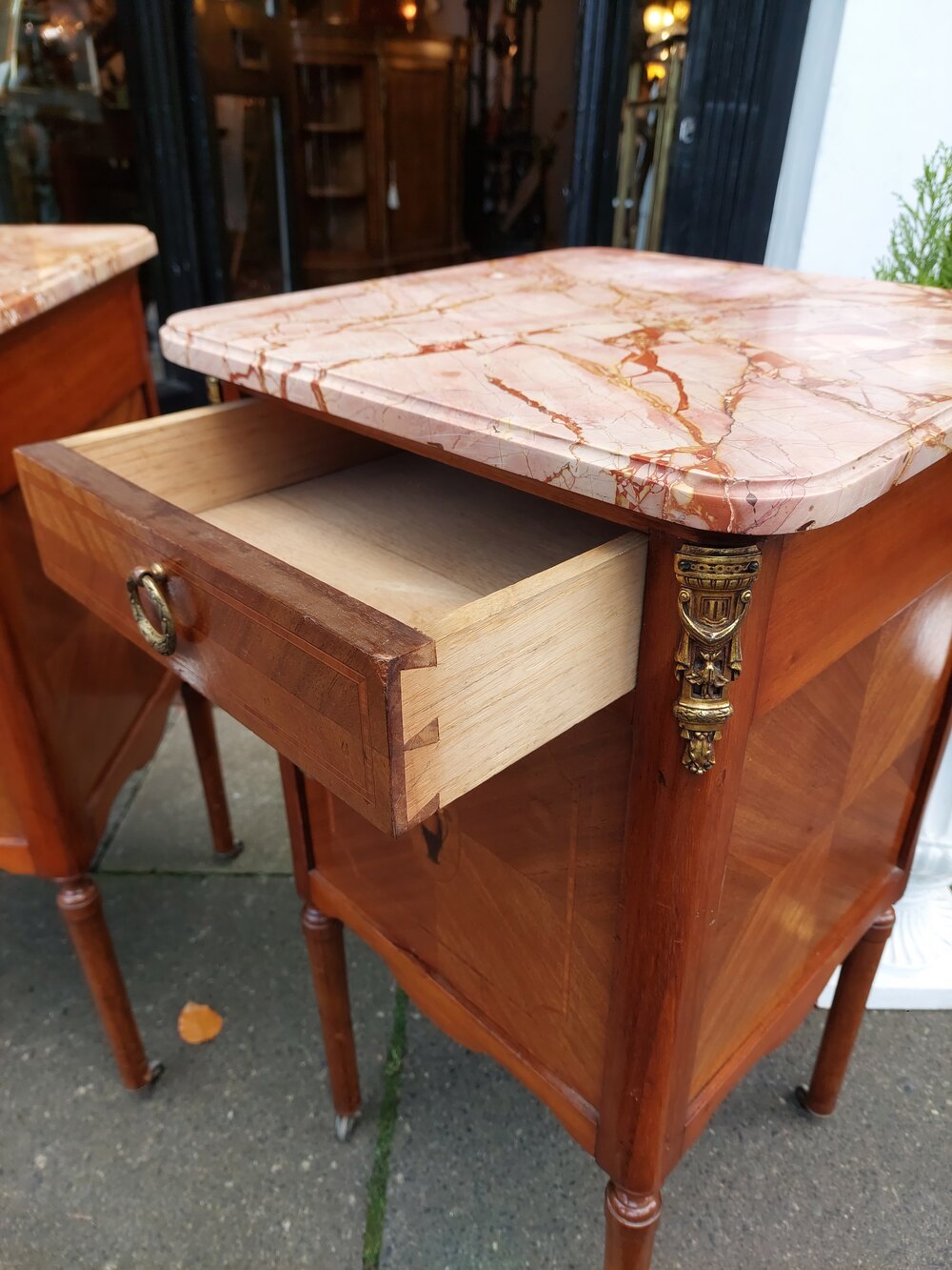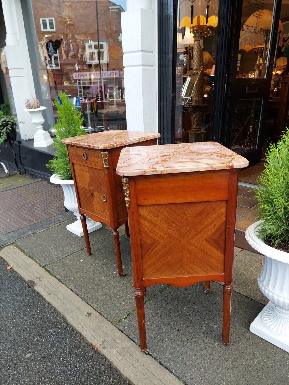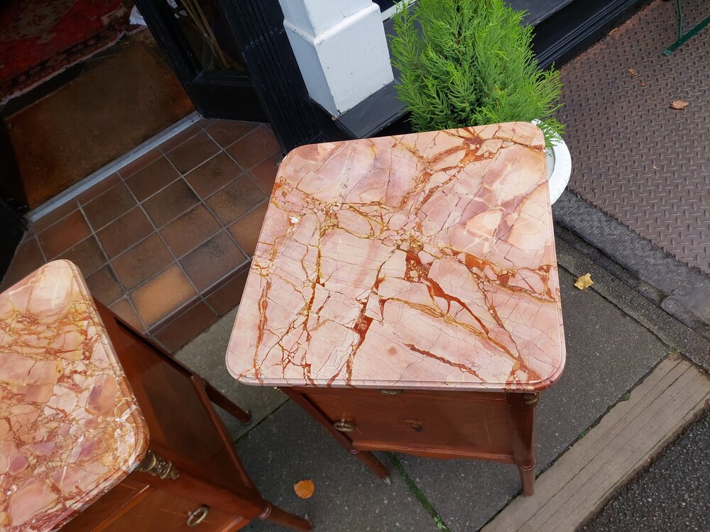 Antique c.1925 Mahogany & Marble Bedside Tables