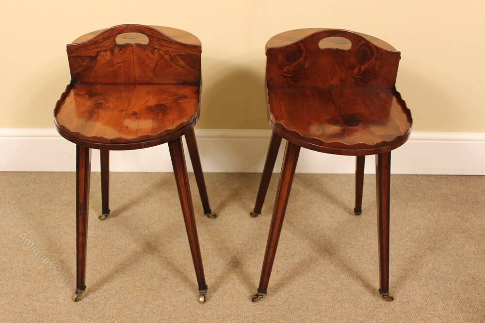 Pair of Late 19thc Yew Wood Butler’s Cutlery & Plate Table Stands