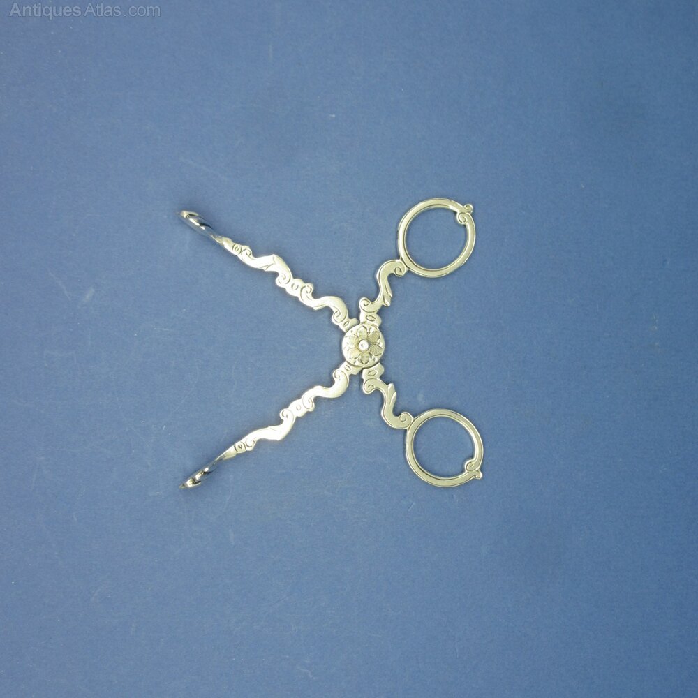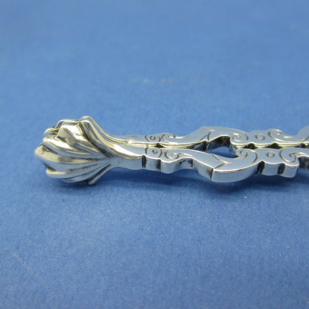 This is a Pair of Decorative Late Victorian Solid Silver Sugar Nips with Shell ends.