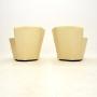 We have had them fully re-upholstered in cream leather with piped edges, they sit on short and sturdy steel feet. The condition is superb throughout.