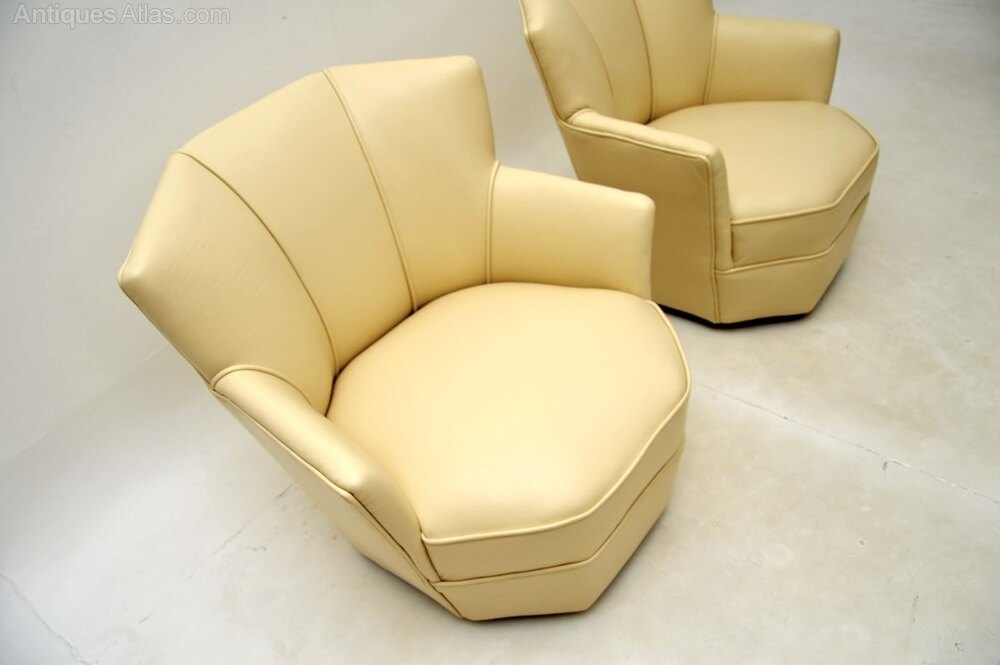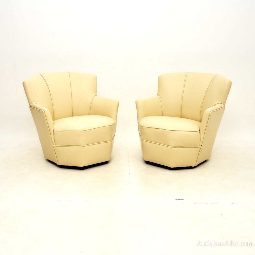 A stunning pair of leather Art Deco armchairs, made in England and dating from the 1930’s.