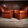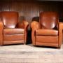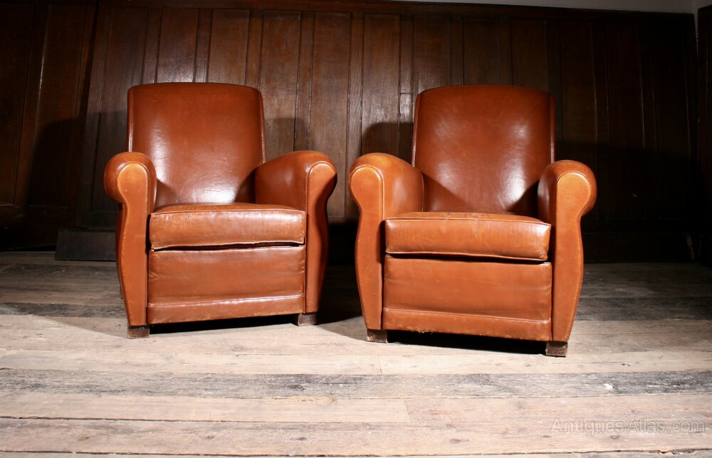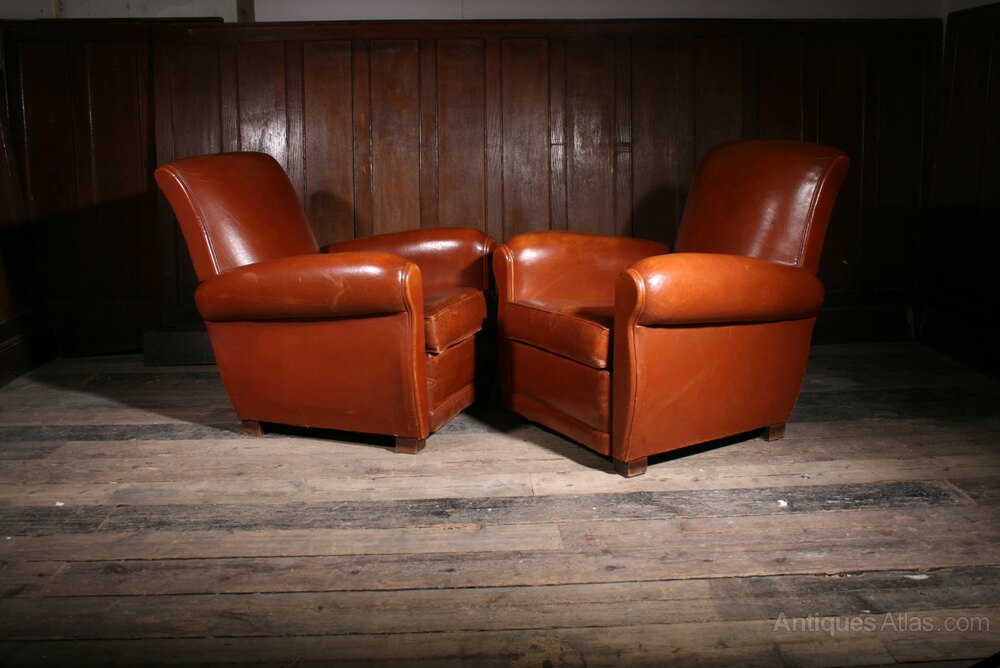 Pair of leather club Chairs, dating from the first half of the 20th century. The chairs are in incredible condition and ready to go straight into any home.