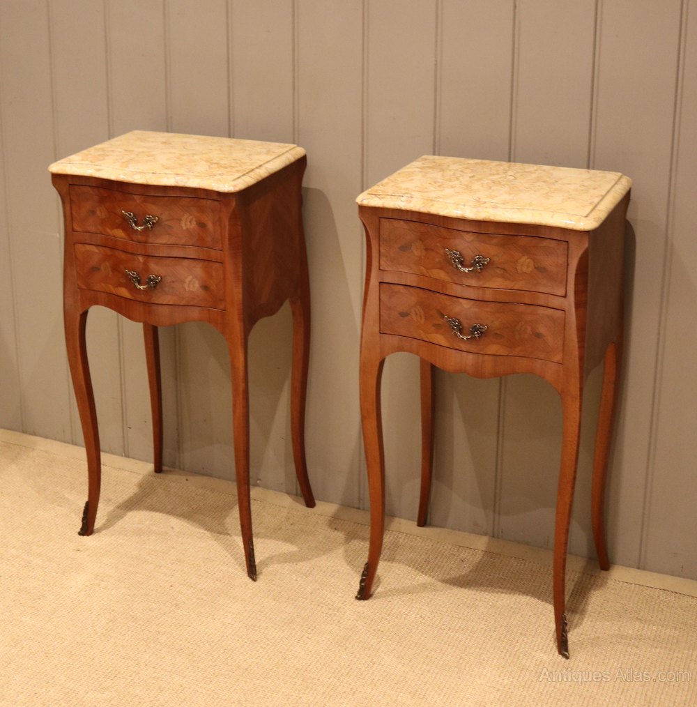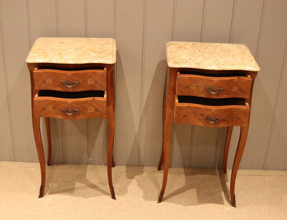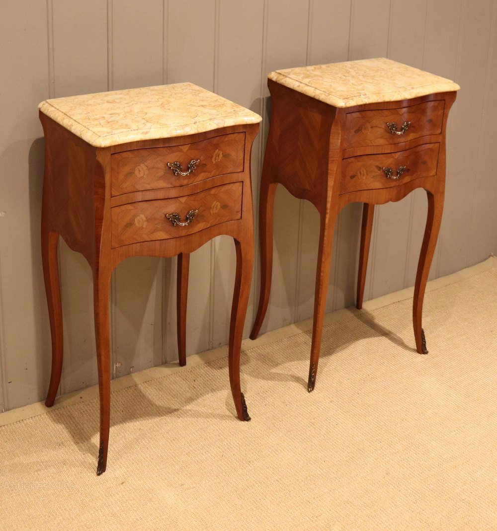 Pair of Louis XV Style Marble Top Bedside Drawers