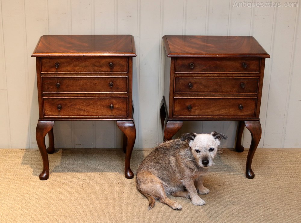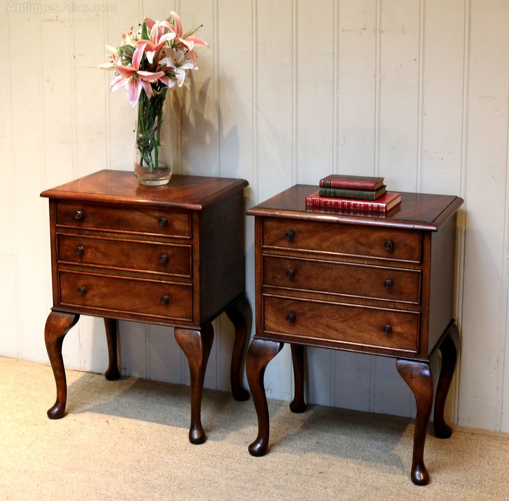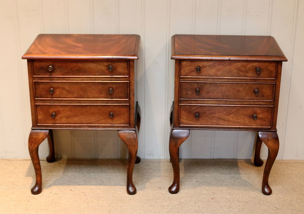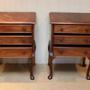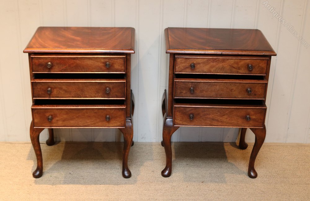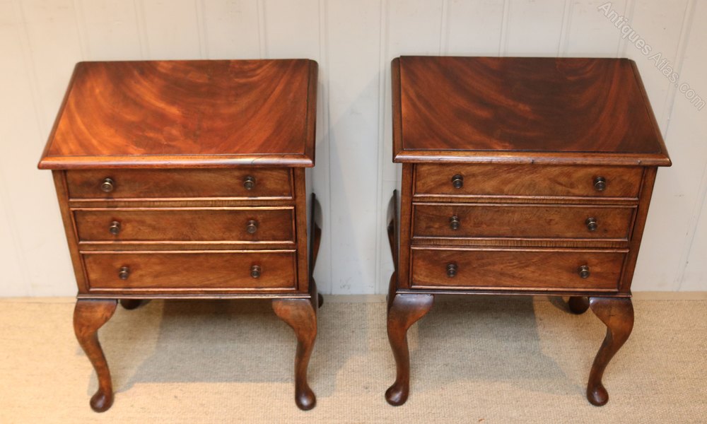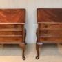 Pair of Mahogany bedside cabinets having shaped tops with three cock beaded drawers ,raised on short cabriole legs