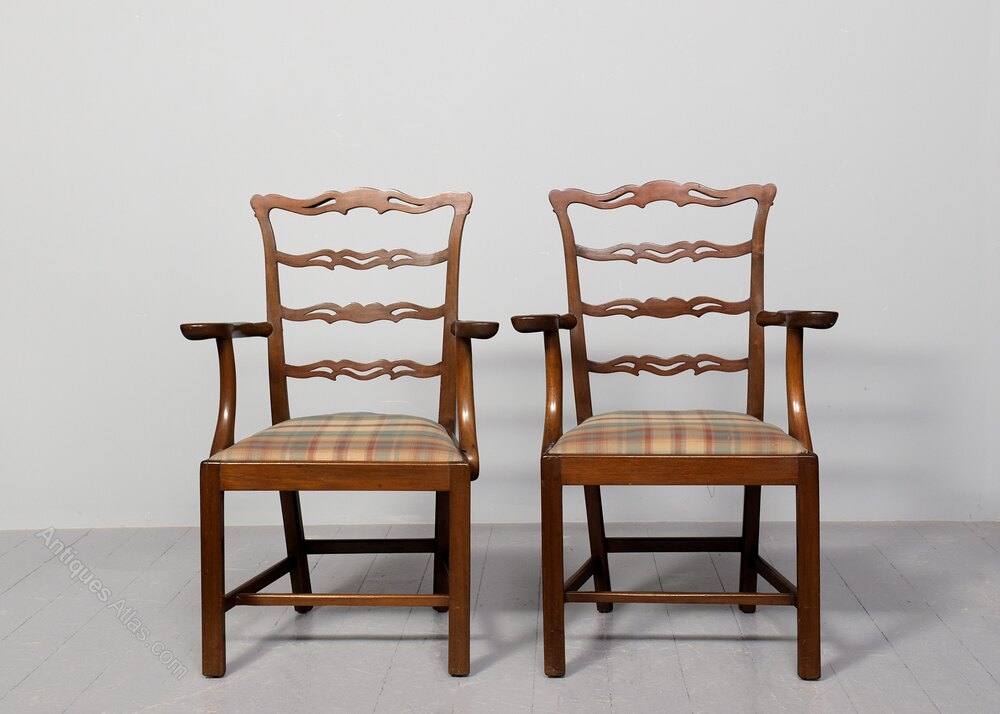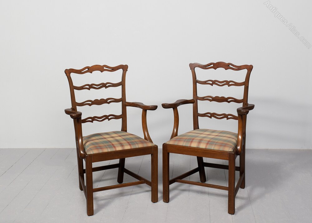 Pair of Mahogany Ladder Back Armchairs