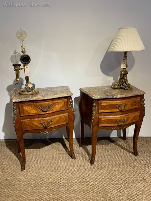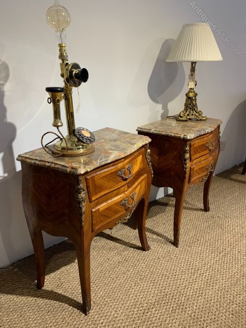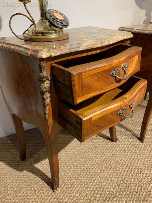 Pair of Louis XV Style Marble Top Bedside Drawers