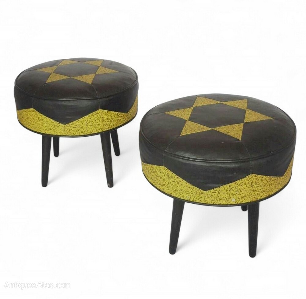 Pair of Mid Century leather stools