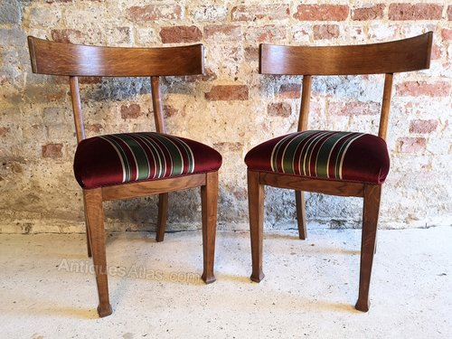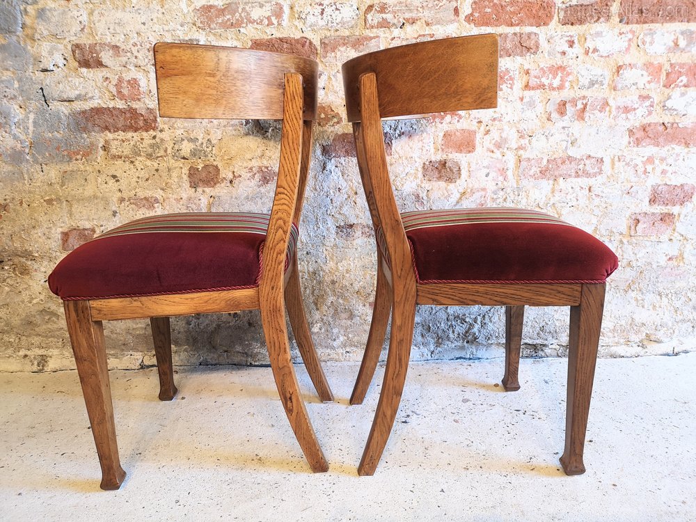 A pair of Scandinavian oak Klismos chairs c1910 in good used condition measuring 56cm x 36 x 83