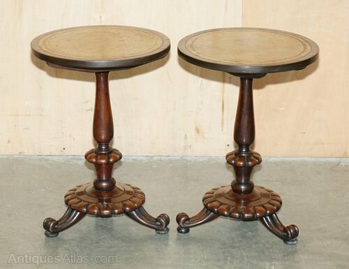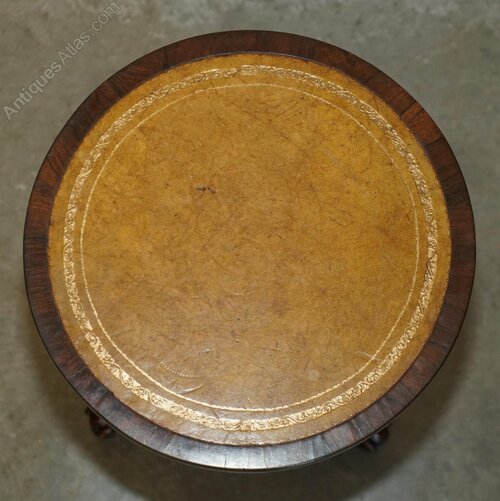 We are delighted to offer for sale this stunning pair of original Antique Regency Circa 1810-1820 Rosewood side tables with hand dyed brown leather gold leaf tooled tops