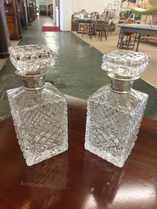 Pair of Silver Mounted Whisky Decanters