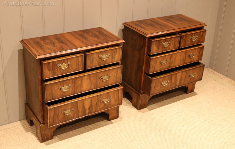 Pair Of Slim Walnut Chests