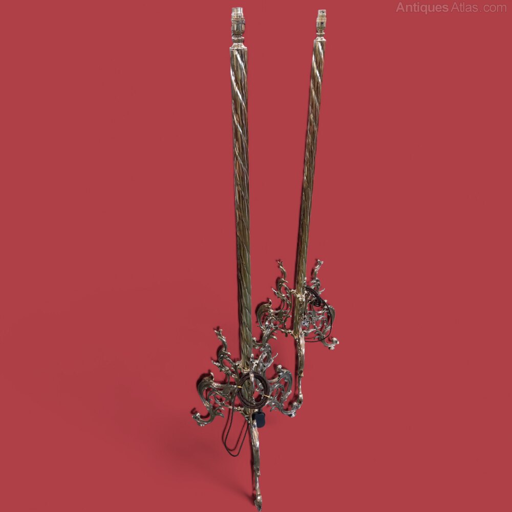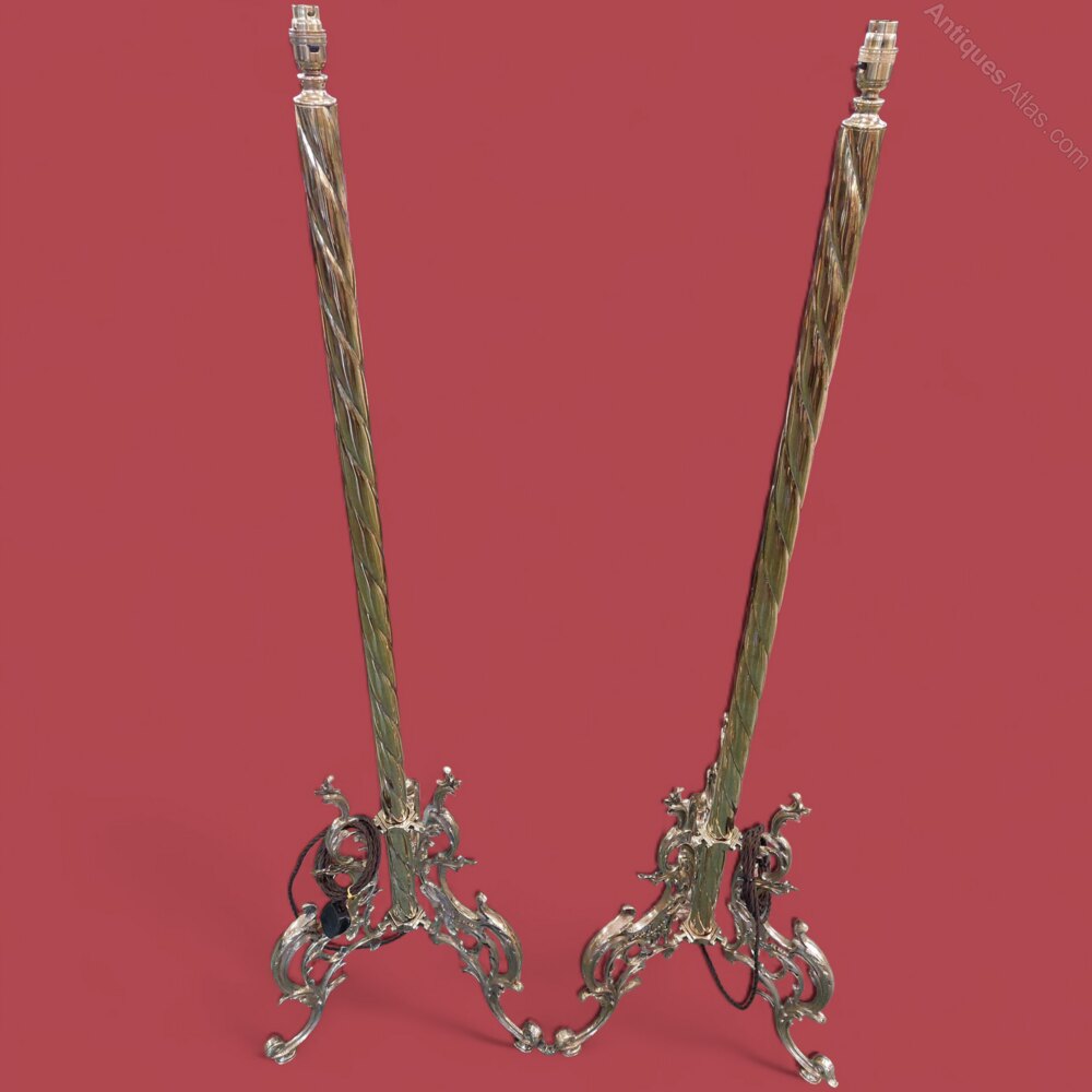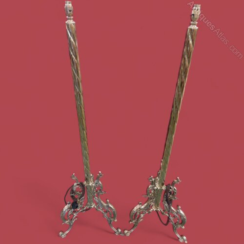 A Pair of Silver Floor Lamps with Shades