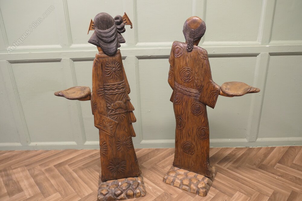 Pair of Tall Carved Japanese Figures, Dumb Waiters