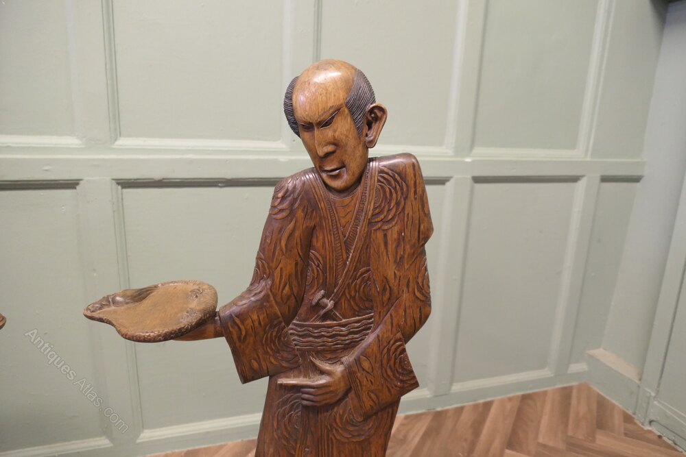 Pair of Tall Carved Japanese Figures, Dumb Waiters or Card Butler