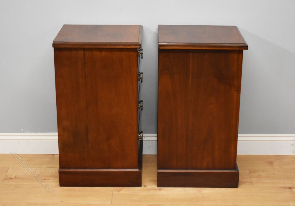 For sale is a pair of Victorian Burr Walnut Bedside Chests. Each chest has four graduated drawers, with ornate brass handles, above a plinth base. Both chests are in very good condition for their age.