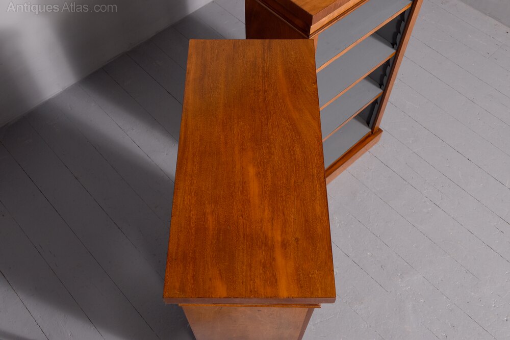 Large Breakfront Walnut Bookcase by Maple & Co.